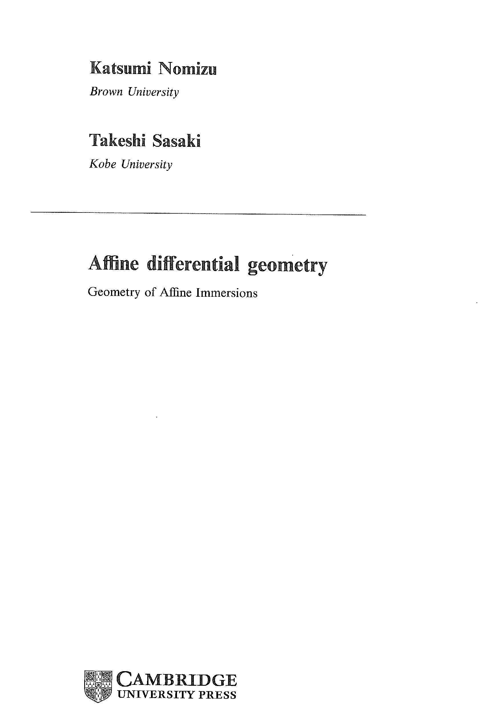 "Affine Differential Geometry: Geometry of Affine Immersions (Cambridge Tracts in Mathematics)" - читать интересную книгу автора (Katsumi Nomizu, Takeshi Sasaki)