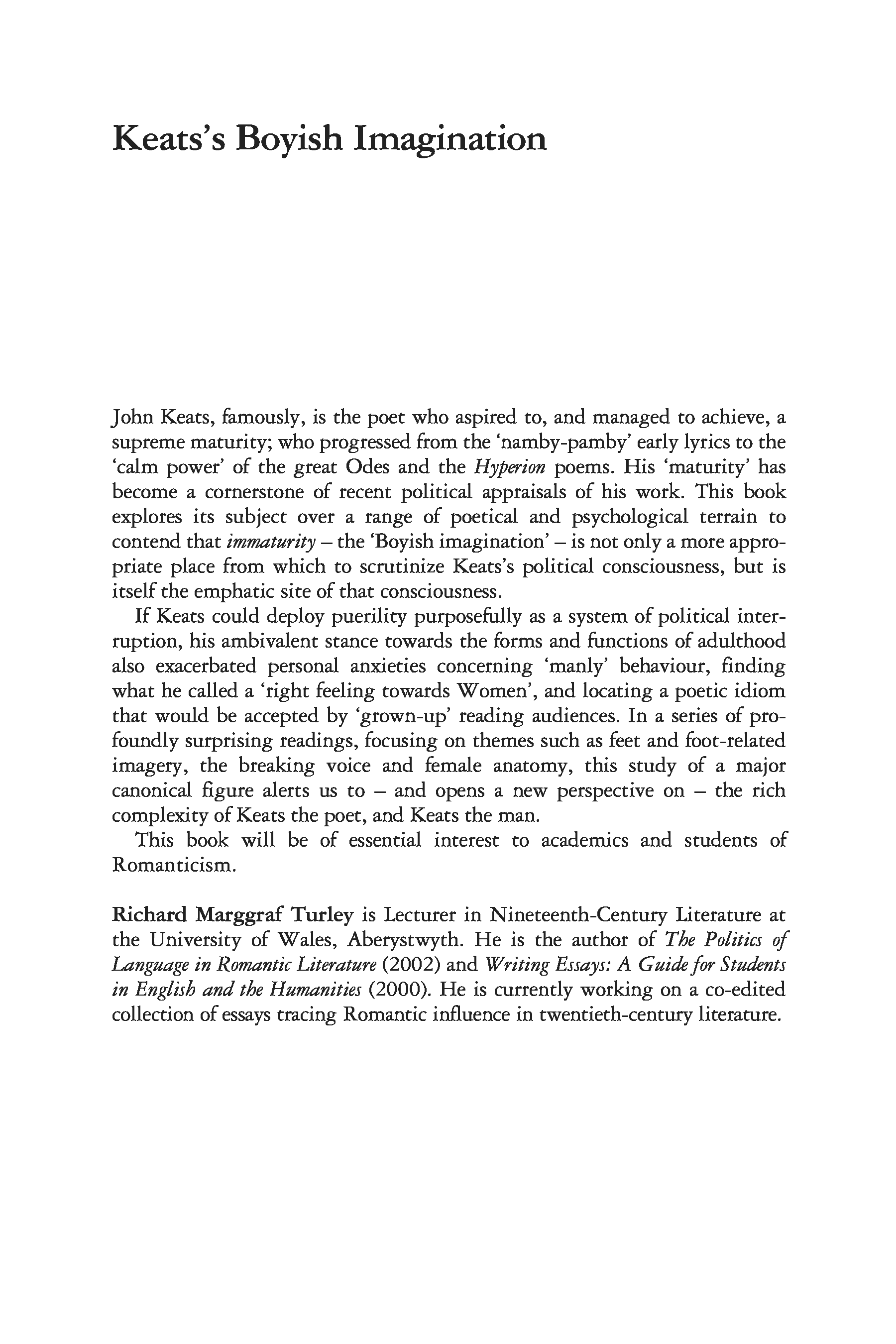 "Keats's Boyish Imagination: The Politics of Immaturity (Routledge Studies in Romanticism)" - читать интересную книгу автора (Richard Marggraf Turley)![]() ![]() ![]() ![]() ![]() ![]() ![]() |