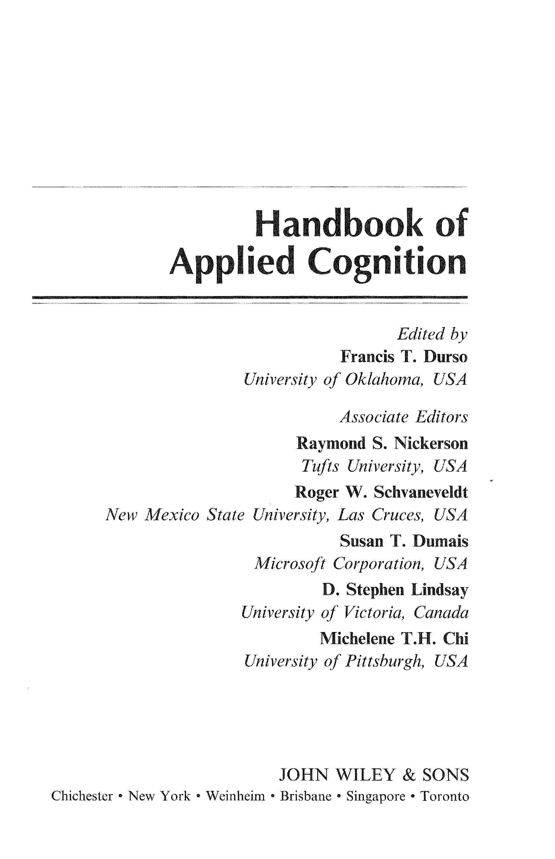"Handbook of Applied Cognition" - читать интересную книгу автора (Raymond S. Nickerson, Roger W. Schvaneveldt, Susan T. Dumais, D. Stephen...)