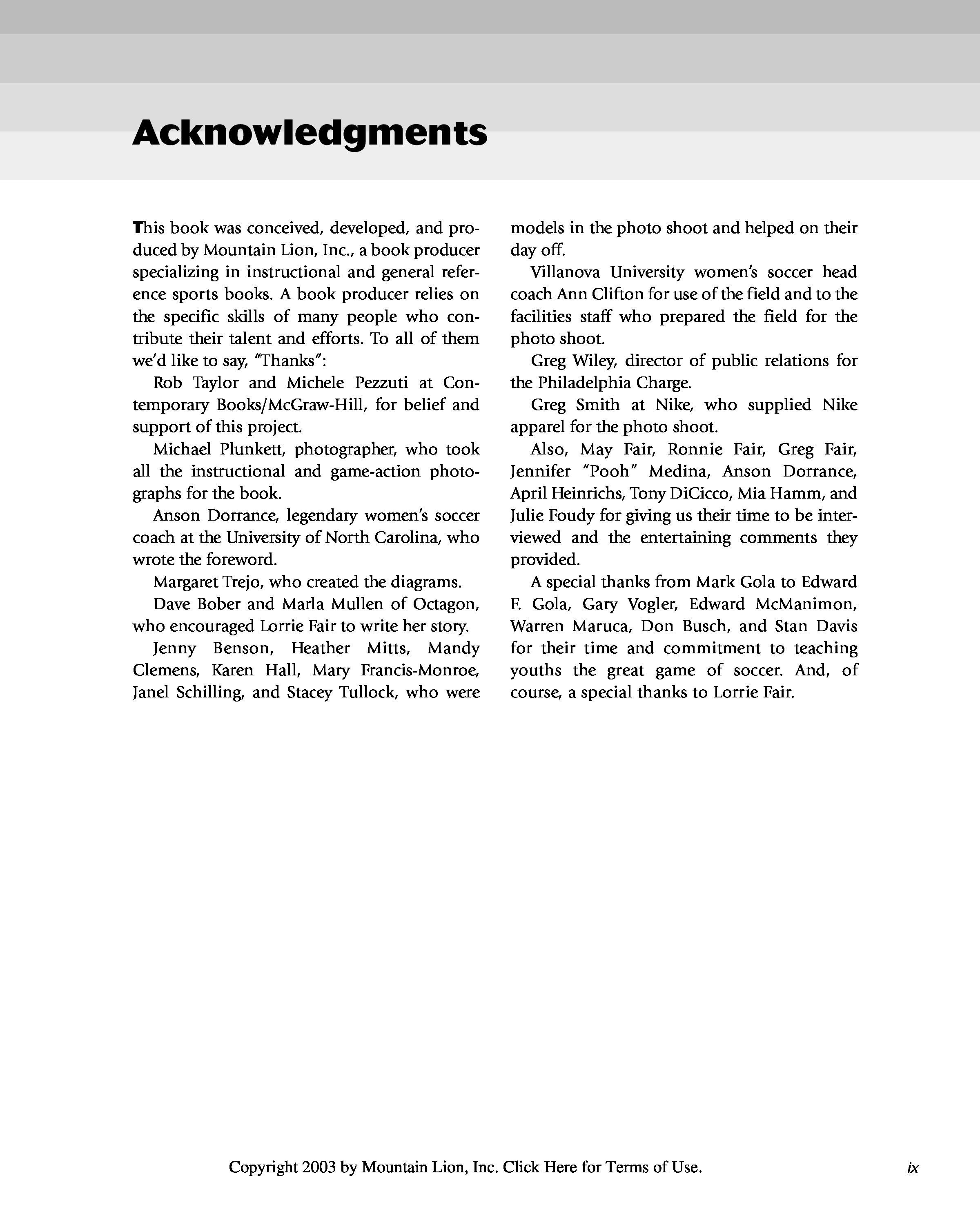 "Fair Game : A Complete Book of Soccer for Women" - читать интересную книгу автора (Lorrie Fair, Mark Gola)