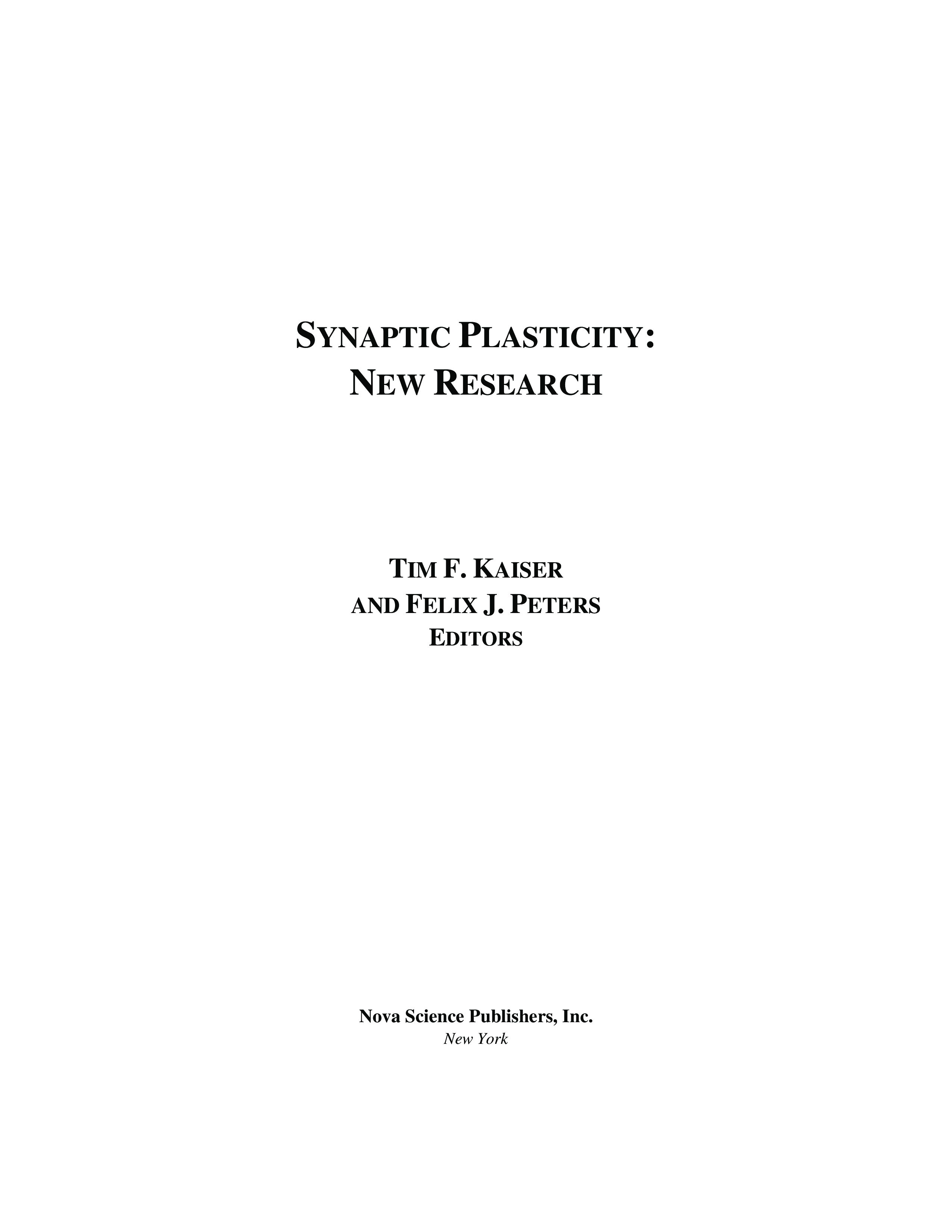 "Synaptic Plasticity: New Research" - читать интересную книгу автора (Tim F. Kaiser, Felix J. Peters)