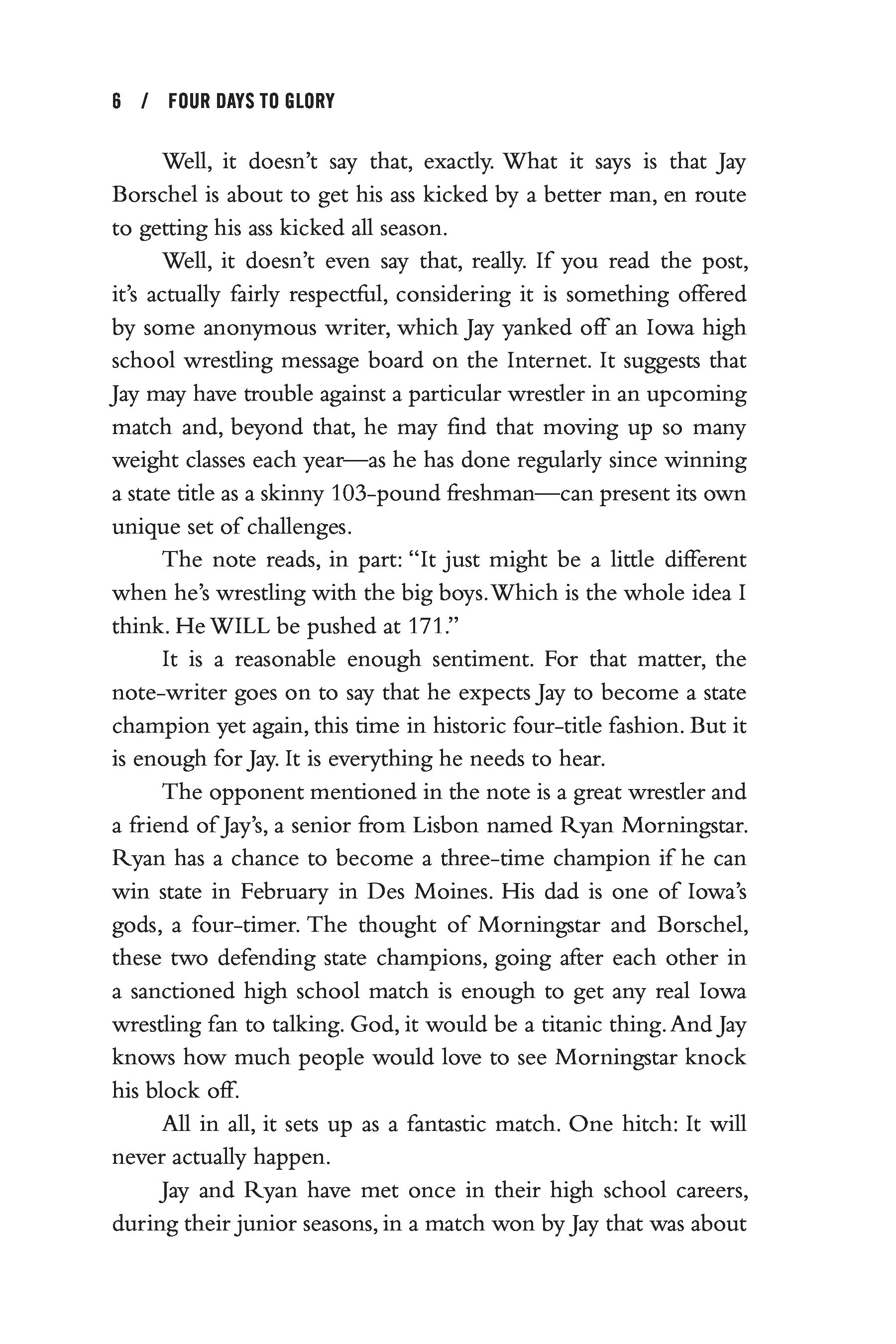 "Four Days to Glory: Wrestling with the Soul of the American Heartland" - читать интересную книгу автора (Mark Kreidler) |