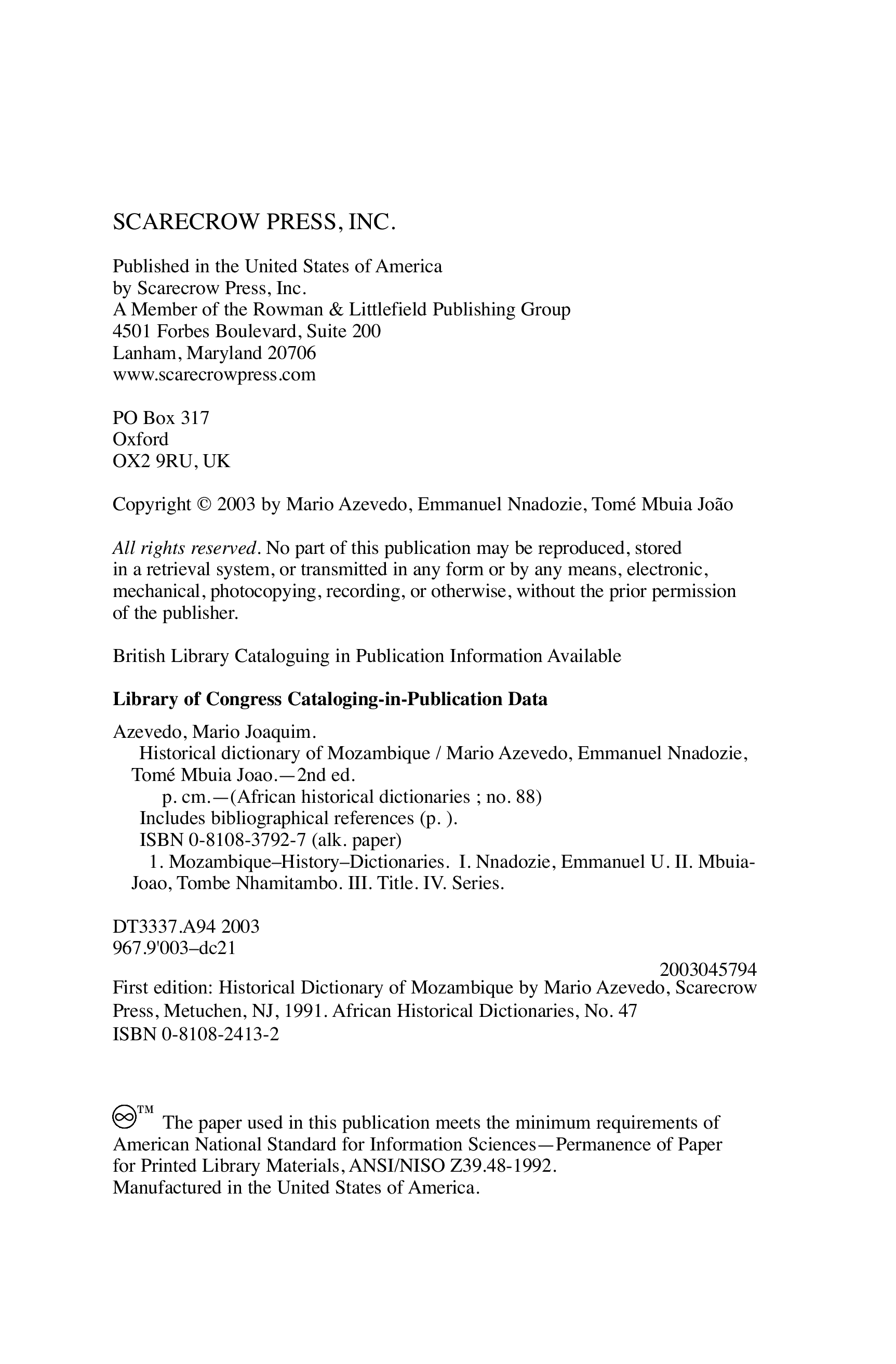 "Historical Dictionary of Mozambique (African Historical Dictionaries Historical Dictionaries of Africa)" - читать интересную книгу автора (Mario Azevedo) |