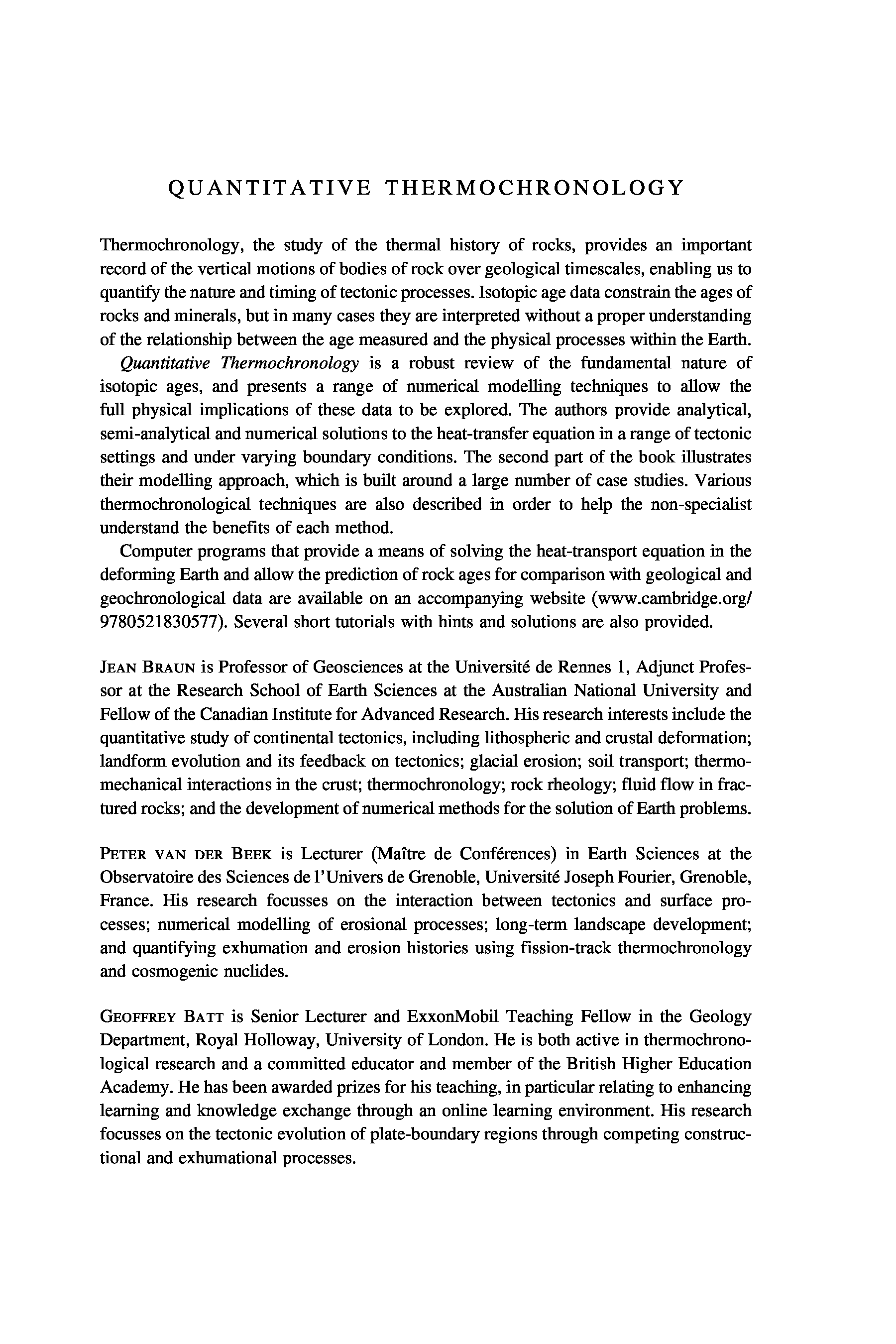 "Quantitative Thermochronology: Numerical Methods for the Interpretation of Thermochronological Data" - читать интересную книгу автора (Jean Braun, Peter van der Beek, Geoffrey Batt)