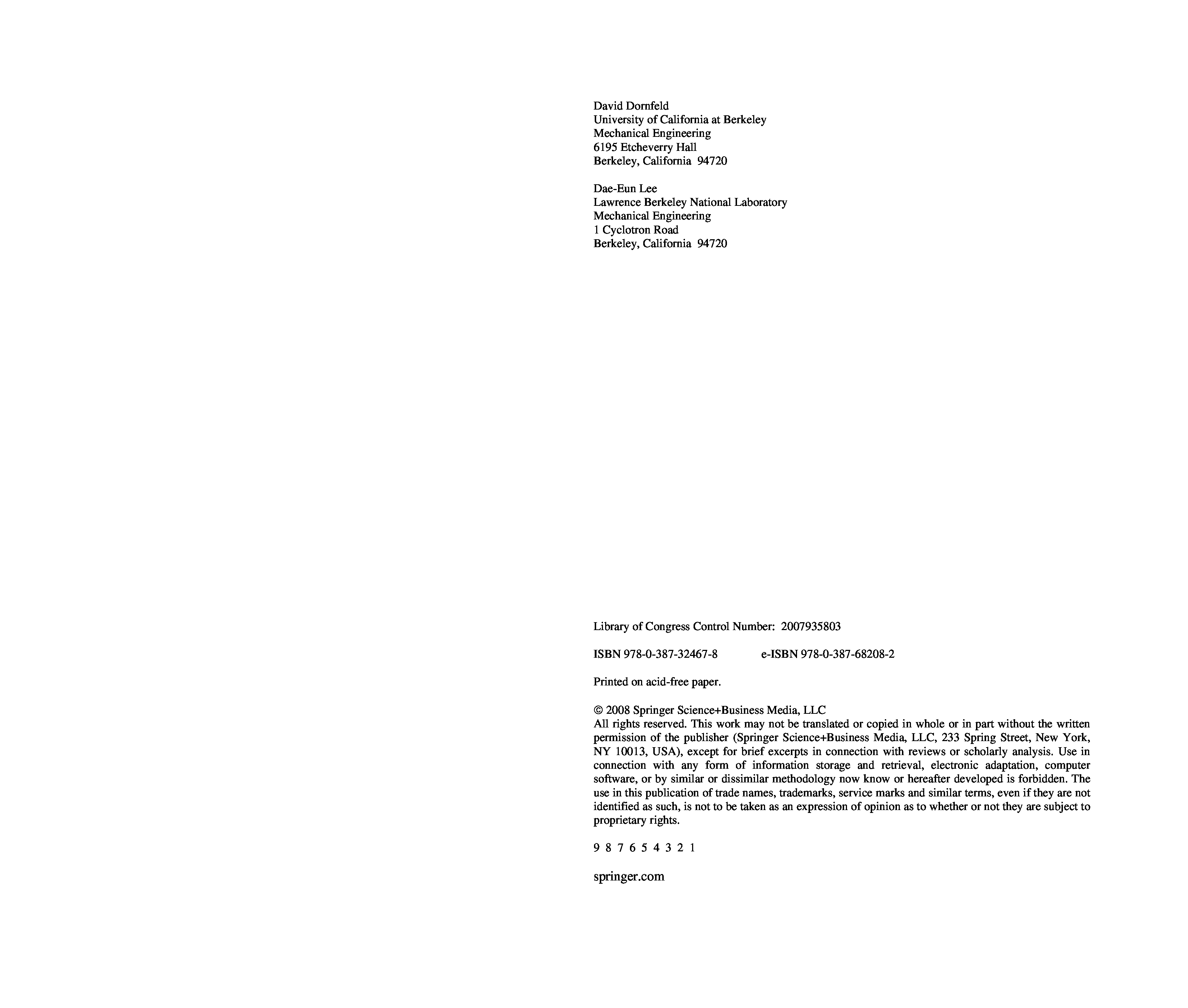 (David Dornfeld, Dae-Eun Lee)