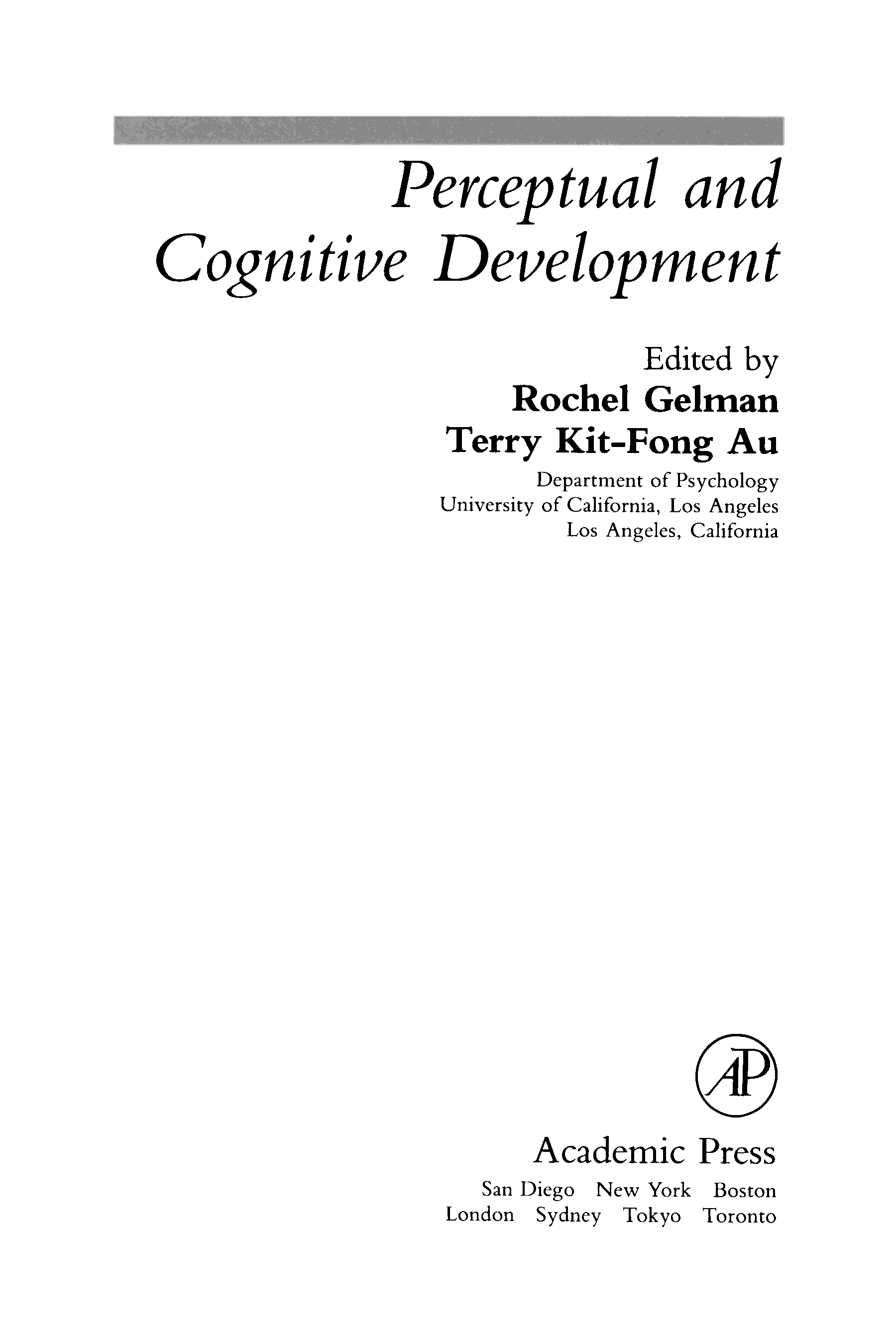 "Perceptual and Cognitive Development (Handbook Of Perception And Cognition)" - читать интересную книгу автора (Rochel Gelman, Terry Kit-Fong Au) |