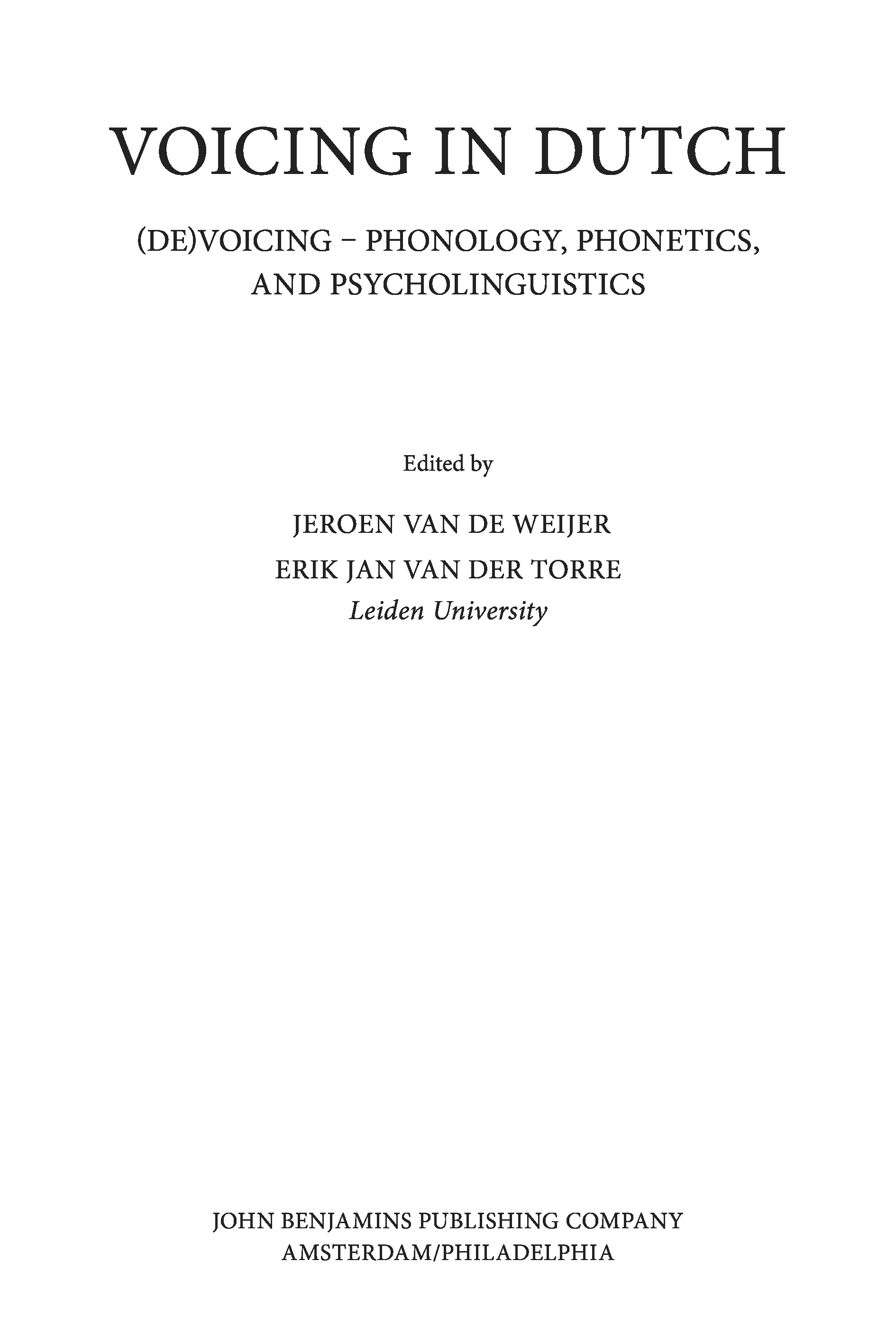 "Voicing in Dutch: (De)voicing--phonology, phonetics, and psycholinguistics (Current Issues in Linguistic Theory)" - читать интересную книгу автора (Jeroen van de Weijer, Erik Jan van der Torre)