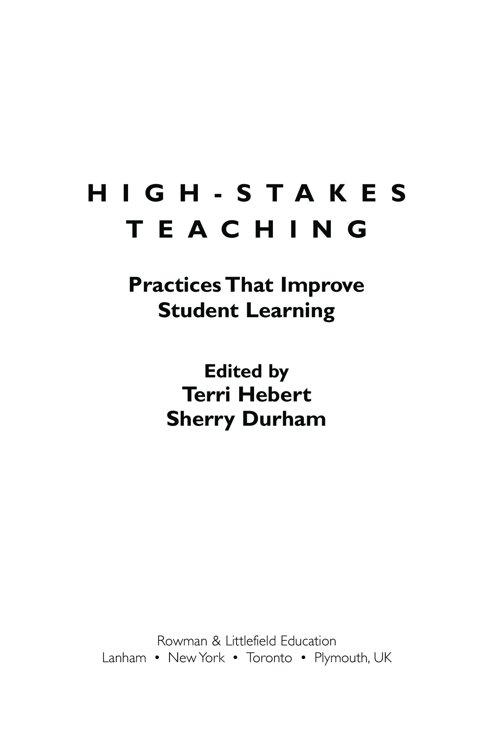 "High-Stakes Teaching: Practices that Improve Student Learning" - читать интересную книгу автора (Terri Hebert) |