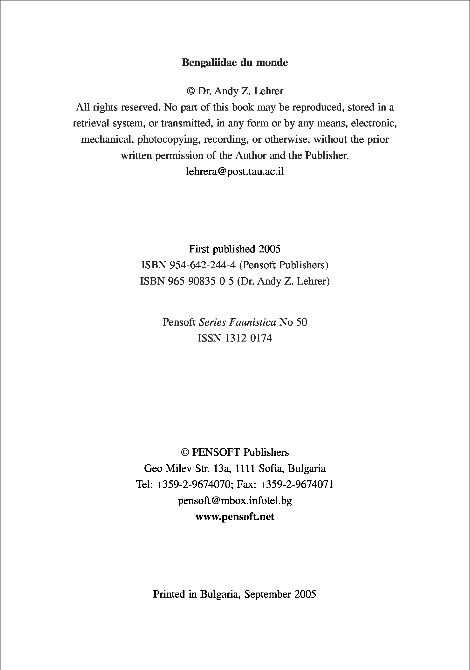 "Bengaliidae Du Monde (Insecta, Diptera) (Bengaliidae of the World (Insecta, Diptera)) (Pensoft Series Faunistica)" - читать интересную книгу автора (Adrienne Lehrer)