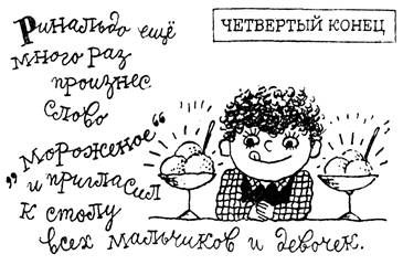 "Сказки, у которых три конца" - читать интересную книгу автора (Родари Джанни)Приключение РинальдоОднажды Ринальдо упал с велосипеда и явился домой с огромной шишкой на лбу. Тетушка, у которой родители оставили его, когда уехали в другую страну искать работу, ужасно испугалась. Она была как раз из тех тетушек, которые всегда и всего пугаются. – Ринальдо, мальчик мой, что случилось? – Ничего страшного, тетя Роза. Упал с велосипеда. Вот и все. – О боже, какой ужас! – Но ты ведь даже не видела, как это было! – Вот именно, поэтому мне и страшно! – В другой раз я позову тебя, прежде чем падать! – Не шути так, Ринальдо! Скажи лучше, зачем ты притащил велосипед в квартиру? – В квартиру? Нет, я оставил его, как всегда, внизу, в подъезде. – Тогда чей же это велосипед? – И тетушка указала в угол кухни. Ринальдо обернулся и увидел у стены красный велосипед. – Этот? Это не мой, тетя Роза! У меня зеленый велосипед. – Действительно, зеленый… Тогда чей же? Он ведь не мог сам подняться сюда? – А что? Может, тут поработали привидения? – Ринальдо, не говори о них, прошу тебя! – А ведь красивый велосипед! Тетушка Роза громко вскрикнула. – Что с тобой? – Смотри, еще один! – В самом деле! И тоже красный! Синьора Роза была просто в панике – так она еще никогда не пугалась. – Но откуда берутся все эти велосипеды? – Да очень просто, – объяснил Ринальдо, – работает, наверное, какое-нибудь славненькое чудо! А нет ли, случайно, велосипеда и в моей комнате? Есть! Смотри-ка, тетя Роза. И тут велосипед! Теперь их уже три! Если так дело пойдет и дальше, скоро у нас весь дом будет заставлен велосипедами… И тут тетушка снова закричала так испуганно, что Ринальдо даже уши зажал. Оказывается, не успел он до конца произнести слово «велосипедами», как они тут же заполнили всю квартиру. «Двенадцать велосипедов в ванной комнате, – невольно сосчитала тетушка Роза, бросив туда ошеломленный взгляд, – и два в самой ванне». – Хватит, Ринальдо! – взмолилась бедная женщина, падая на стул. – Хватит, я больше не могу! – А что хватит? При чем тут я? Не я же их фабрикую! Вот придумала! Мне не собрать и трехколесного велосипеда, не то что эти… – «Динь-динь!» На столе, словно из воздуха, возник великолепный трехколесный велосипед, совершенно новенький – колеса еще были обернуты бумагой. А звонок весело звенел, точно говоря: «И я здесь!» – Ринальдо, прошу тебя! – Тетя Роза, неужели вы в самом деле думаете, что это хоть в какой-то мере зависит от меня? – Конечно, сынок! Я хочу сказать… Нет, я не думаю… Но все равно, Ринальдо, прошу тебя, будь осторожен – не произноси больше слово «велосипед» и даже просто «трехколесный»! Ринальдо рассмеялся: – Ну, если дело только в этом, то я могу поговорить и о чем-нибудь другом. О будильниках, к примеру, или – арбузах… Или, скажем, о шоколадном пудинге или резиновых сапогах. Тетушка упала в обморок. По мере того как Ринальдо называл эти вещи, дом заполнялся будильниками, арбузами, пудингами и сапогами. Эти необычные и неожиданные вещи возникали прямо из ничего, словно призраки. – Тетя! Тетя Роза! – А? Что? Ах! – пролепетала тетушка, приходя в себя. – Ринальдо, дорогой, сядь, пожалуйста, вот там и помолчи! Ты любишь свою тетю? Тогда сядь и не шевелись! А я схожу за профессором Де Волшебнис. Он разберется, в чем дело. Профессор Де Волшебнис, к которому устремилась тетушка Роза, был пенсионеро