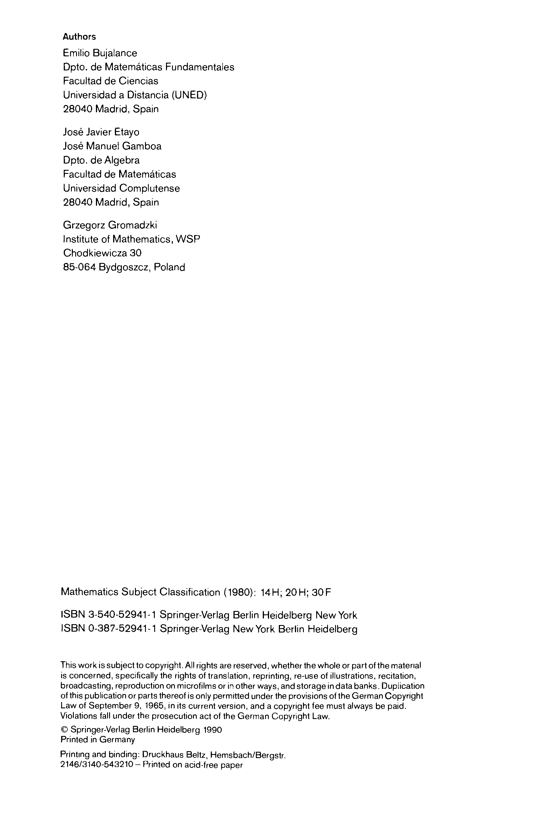 "Automorphism groups of compact bordered Klein surfaces" - читать интересную книгу автора (Bujalance, Etayo, Gamboa, Gromadzki.) |