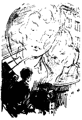 Что сказать о том вечере? В тот вечер не горели уличные фонари и дачный посёлок потонул в глубокой темноте. Заколоченные дачи хранили давно забытые тайны. Печально перекликались одинокие сторожевые собаки. Ветер проносился по сухим веткам и исчезал. Далёкие огоньки мигали, как холодные звезды, и казалось, что люди никогда не вернутся в эти края. Серёжа Раскат медленно шёл по тропинке, переступая через жилистые корни, но ему хотелось опрометью бежать, чтобы эта дорога поскорей кончилась. Если бы не Шторм, он ни за что не приехал бы сюда вечером один. Где-то послышалось отрывистое тявканье, а потом жалобное повизгивание. Бедный пёс! Наверно, он не раз уже вылизывал пустую жестяную миску, таская её языком по земле. Серёжа пошёл быстрее. Сторожем Шторм не стал. Он не терпел одиночества и радовался каждому, входящему в калитку. Утром его надо отвезти в город. При приближении Серёжи пёс залаял навзрыд и заплясал на задних лапах, гремя опостылевшей цепью. Отвязав ошалевшего от радости Шторма, Серёжа взбежал на крыльцо и отпер тяжёлый ржавый замок. Дача стояла, как неприступная крепость в притаившейся темноте, и, войдя в дом, Серёжа почувствовал себя в полной безопасности. Споткнувшись о дрова, сложенные в сенях, он включил свет, захватил охапку полешек и, сопровождаемый радостно повизгивающим Штормом, вошёл в комнату и начал растапливать печку. Вскоре Серёжа уже сидел за кухонным столом и ел варенье из зимних запасов, а Шторм с весёлой сытостью следил за разгорающейся печкой. В соседней комнате медленно пробили старые часы. У этих часов был очень долгий и печальный перезвон. Сначала они немного гудели, а потом начинали играть какую-то давно забытую песню. Их заводили на неделю вперёд и они всю неделю жили своей одинокой и грустной жизнью, исправно, каждые четверть часа, отбивая время в пустом доме. Погудев ещё немного, часы затихли. Серёжа зевнул и посмотрел в окно. Дрожащим косым пунктиром тянулись тонкие полоски осеннего дождя. «Скорей бы закрыть печку и спать», — подумал Серёжа. Дрова быстро и дружно догорали. Серёжа поставил перед собой коробку с гильзами и начал скручивать пыжи для старого охотничьего ружья. Сделав несколько пыжей, Серёжа помешал дрова в печке. Часы в соседней комнате снова пропели свою старую песню, а затем пробили девять. Шторм неожиданно вздрогнул, приподнял голову, уши его встрепенулись. Он прислушался, потом рванулся к двери и визгливо залаял. — Кто там? — крикнул Серёжа. Никто не отвечал. «Наверно, кошка!» — Серёжа снова подвинул к себе пыжи. Но Шторм лаял все настойчивее, и Серёжу охватило беспокойство. «Женька сказал бы, что я трушу», — подумал Серёжа. — Вперёд, Шторм! — крикнул он и, взяв незаряжённое ружьё, вышел в сени. Никого! Серёжа резко отодвинул засов и отворил дверь на крыльцо. Шторм завизжал и ринулся по ступенькам вниз. На земле лежал велосипед. Было похоже, что он скатился с крыльца. Серёжа поставил ружьё и огляделся. Вокруг было тихо и пустынно. Дождь перестал, и только капли с крыши громко шипели о лужи. Серёжа спустился со ступенек и подошёл к Шторму, обнюхивавшему велосипед. «0ткуда он взялся?» Серёжа включил карманный фонарик. Это был очень странный велосипед. Крылья его напоминали изогнутые трубки и заканчивались внизу толстой лиловой улиткой. На руле поблёскивали какие-то светлые кнопки. Серёжа подн