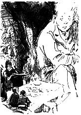 «Предок или не предок? — гадал в это время старик на ромашке, растущей в горшке на окне. — Предок — не предок. Предок — не предок». Получился предок, и старик решил продолжать рассказ. — Минитак из нашего рода не смог разгадать эти знаки. Он передал находку своему внуку, когда ему исполнилось двадцать пять лет. Внука звали Мининог. Но он тоже ничего не понял из того, что было написано на белом материале. Тогда он положил его под стеклянный колпак и передал своему внуку Плюксу, когда тот достиг совершеннолетия. Это было очень трудно сделать, потому что в семье Мининога всё время рождались только девочки, и ему пришлось очень долго ждать, пока появится внук и ему исполнится двадцать пять лет. К тому же Мининог на девяносто седьмом году своей жизни тяжело заболел корью и выздоровел только благодаря большой силе воли. Он твёрдо помнил, что не имеет права умереть, пока не достигнет совершеннолетия его внук Плюкс. Плюкс, получивший в наследство драгоценную находку, трудился всю жизнь над её разгадкой. Но он тоже не сумел её разгадать. Тогда он откачал воздух из-под колпака и стал хранить находку под вакуумом — для лучшей сохранности. В таком виде он передал её своему внуку Стирофлексу, который тоже ничего не понял, но приделал новую подставку к стеклянному колпаку… Тут голова старого минитака стала клониться книзу, и он задремал. — Вперёд! — закричал он во сне и проснулся. — Так продолжалось очень долго, — продолжал, встрепенувшись старик. — Наконец очередь дошла и до меня. Я получил колпак с находкой от своего деда… «Канительная эстафета», — подумал Серёжа, с нетерпением поглядывая на колпак. — Боюсь, не упустил ли я какие-нибудь подробности? — Нет! Нет! — Ясно было всегда лишь одно, — торжественно произнёс минитак. — Эта находка может объяснить, кто был предком народа минитаков. Теперь смотрите, — старик движением фокусника снял колпак и развернул что-то, свёрнутое в трубочку. Серёжа прильнул к окну. Это «что-то» было пожелтевшей бумагой. На ней были написаны настоящие человеческие буквы. Буквы стояли вверх ногами. — «Я последний человек на Острове»… — прочитал Серёжа, склонив голову набок. — Переверните скорей письмо! — закричал он. Старик зашатался, внуки его поддержали. — Нашёлся предок, — прошептал он и дрожащими руками перевернул бумагу. — «У меня мало сил, и я должен торопиться», — залпом прочитал Серёжа и запнулся. — Здесь неразборчиво. «Улетаю с Острова»… — медленно разбирал он запись. — «Бедняги минитаки»… Снова неразборчиво. — Что? Что вы прочли? — спросил старик. — Бедняги минитаки… — повторил Серёжа. — Да, там так написано. — И он на всякий случай отодвинулся от окна. — Значит, бедняги? — Да, — с недоумением ответил Серёжа. — Значит, минитаки? — Да, — снова подтвердил Серёжа. — Так написано. — Ах, ты! — вскричал старик и вдруг стал запихивать письмо снова под колпак. — Ничего вы не получите! — бормотал он. — Руки коротки! Подождите! Вот будет Сластику двадцать пять… Как вам не стыдно? А ещё гигант! — Почему мне должно быть стыдно? — недоумевал Серёжа. — Да потому, что вы не наш предок! Сами же прочли, что минитаки были уже тогда, когда писал письмо тот, следы которого нашли в Пустыне предков… — Но это был человек… — А вы то сами кто? — Тоже человек. И вовсе не ваш предок. И не напрашивался я разгадывать ваши тайны! Ну, я пошёл! 