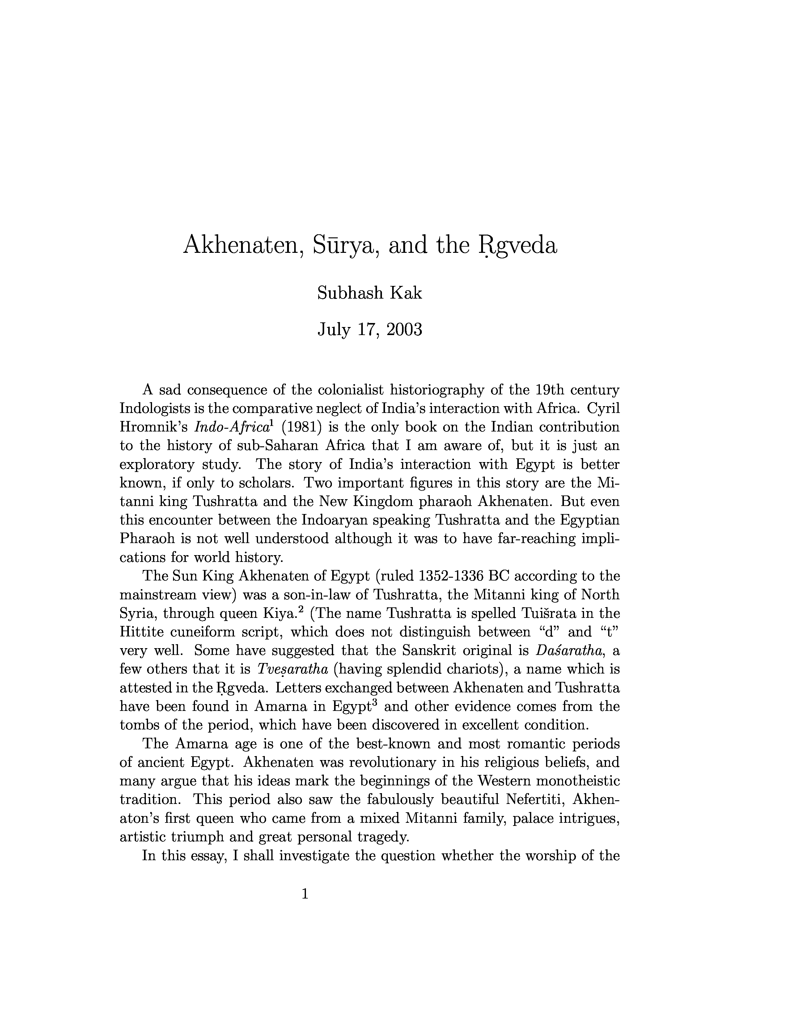 "Akhenaten, Surya and the Rgveda" - читать интересную книгу автора