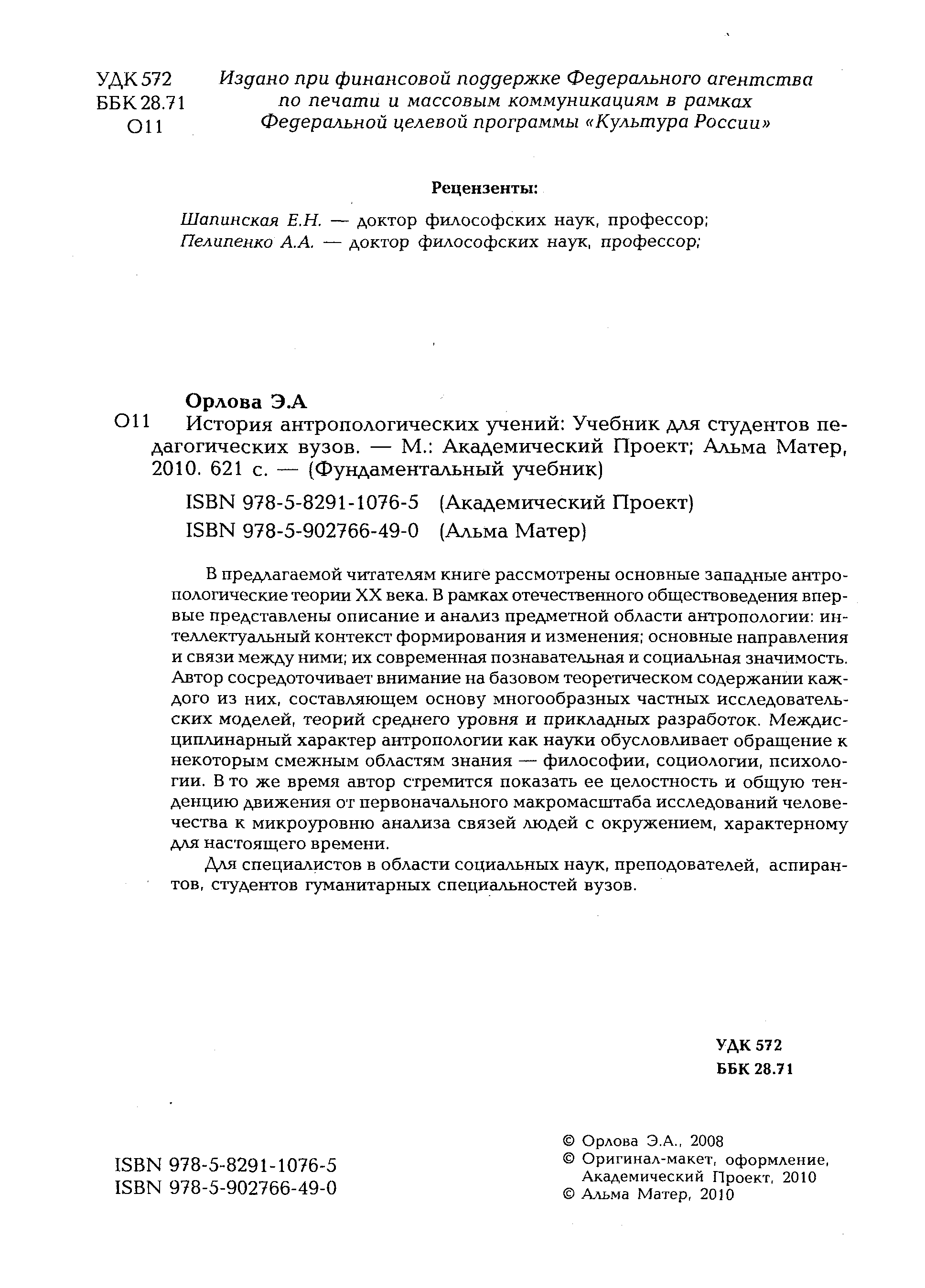 "История антропологических учений" - читать интересную книгу автора (Орлова Э.А.)
