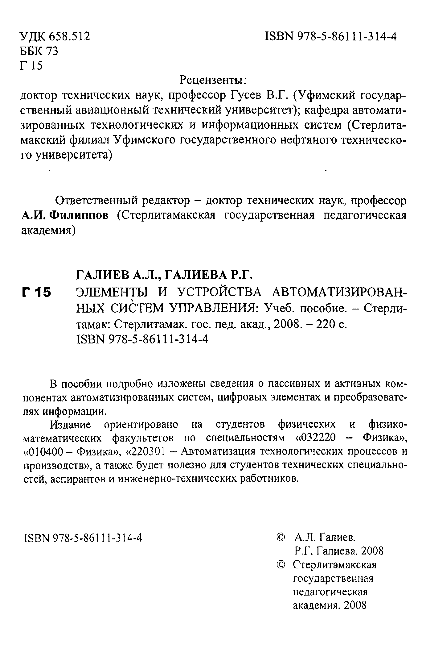 "Элементы и устройства автоматизированных систем управления" - читать интересную книгу автора (Галиев А.Л., Галиева Р.Г.) |