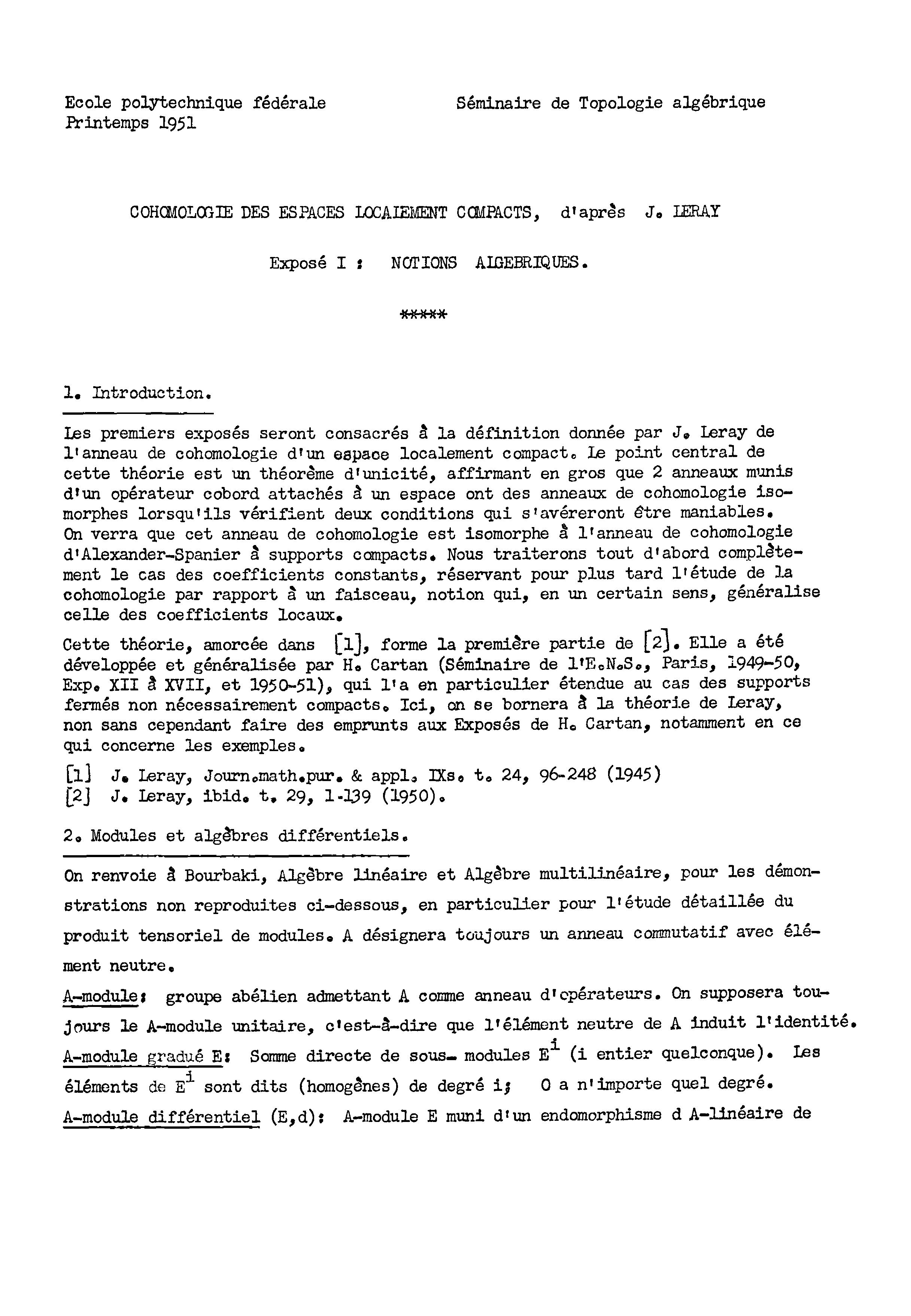 "Cohomologie des espaces localement compacts d'après J. Leray: Exposés faits au Seminaire de topologie algébrique de l'Ecole polytechnique fédérale au printemps 1951 (Lecture Notes in Mathematics), Troisième Edition" - читать интересную книгу автора (Armand Borel) |