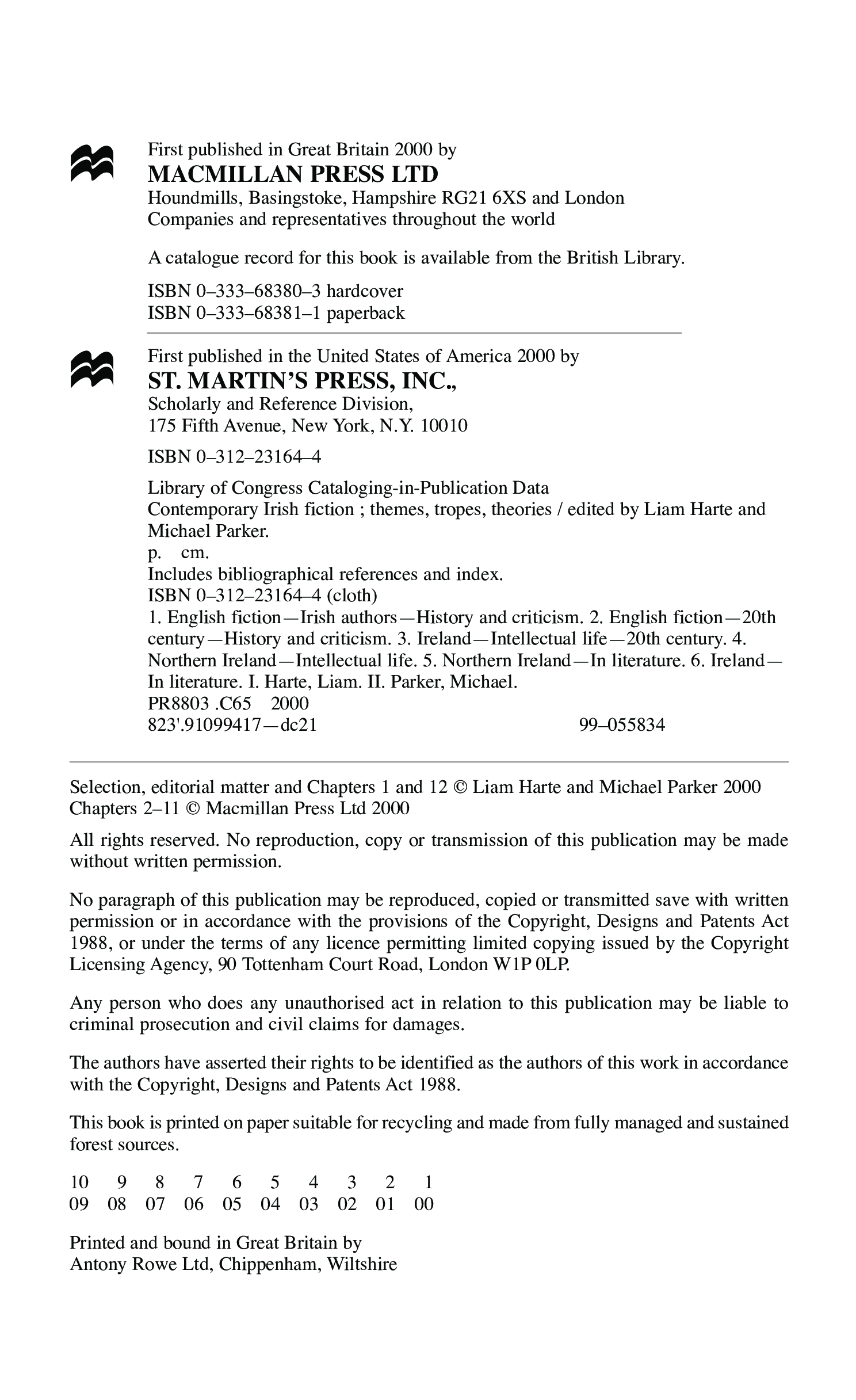 "Contemporary Irish Fiction: Themes, Tropes, Theories" - читать интересную книгу автора (Liam Harte, Michael Parker) |