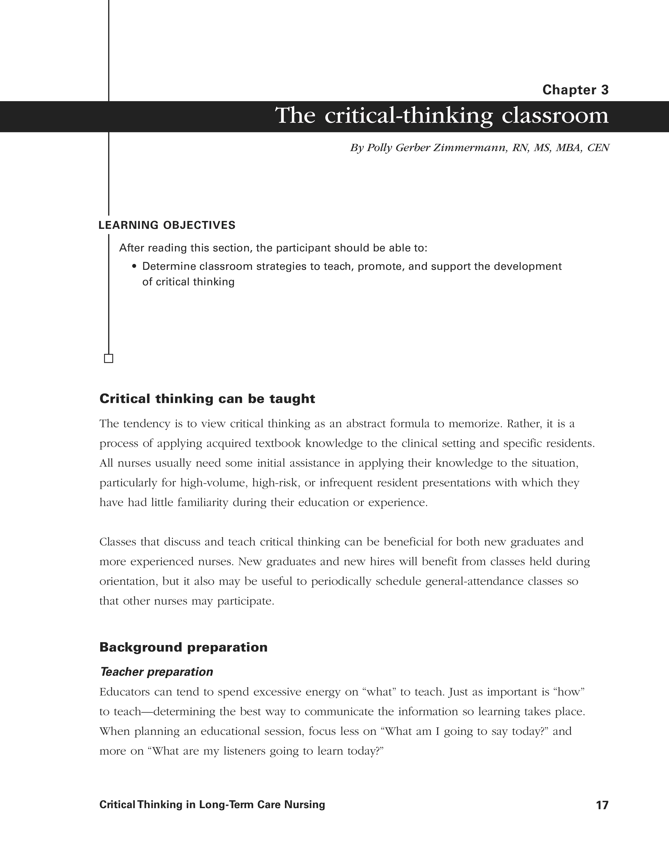"Critical Thinking in Long-Term Care Nursing: Skills to Assess, Analyze, and Act" - читать интересную книгу автора (Shelley Cohen) |