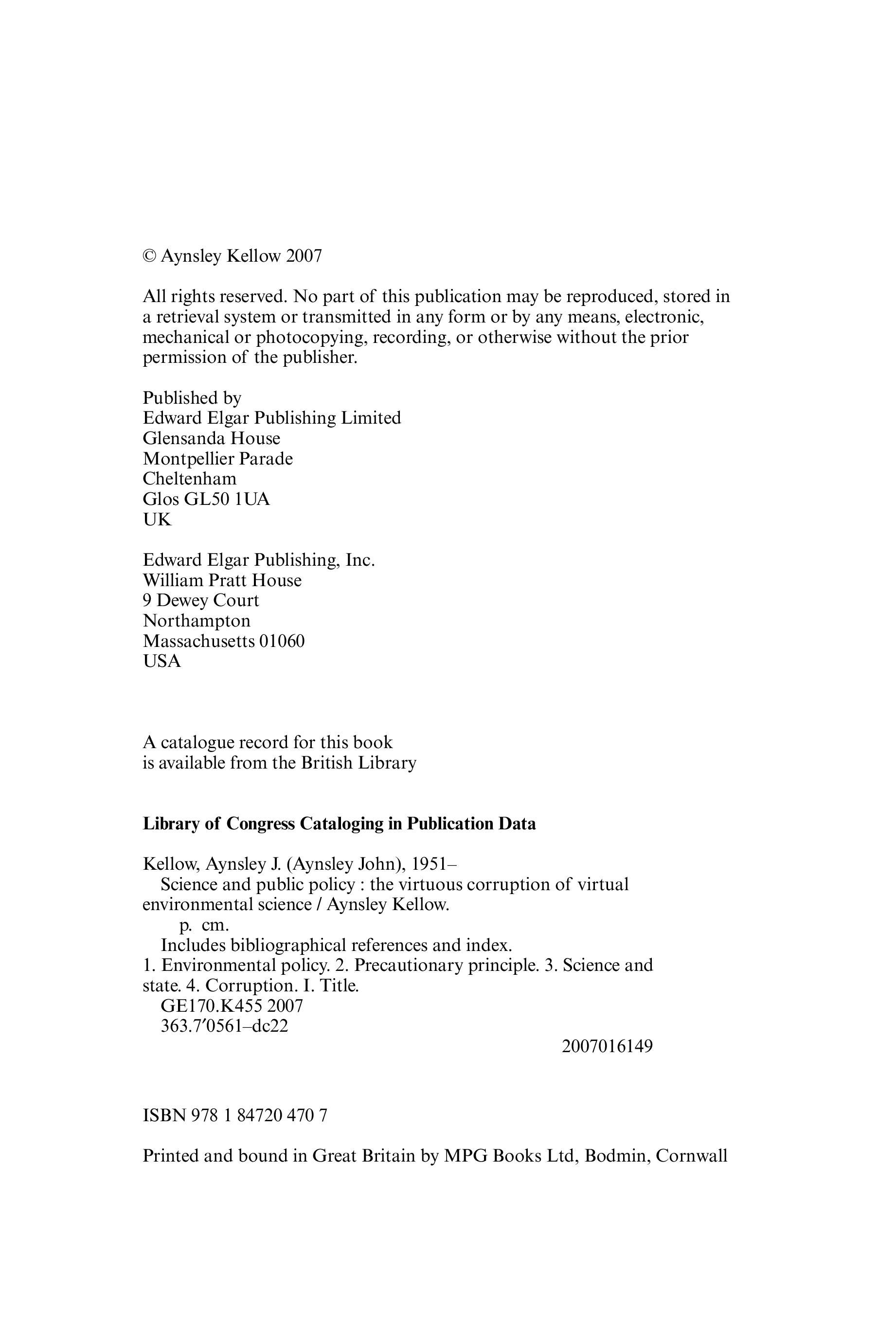 "Science and Public Policy: The Virtuous Corruption of Virtual Environmental Science" - читать интересную книгу автора (Aynsley J. Kellow)