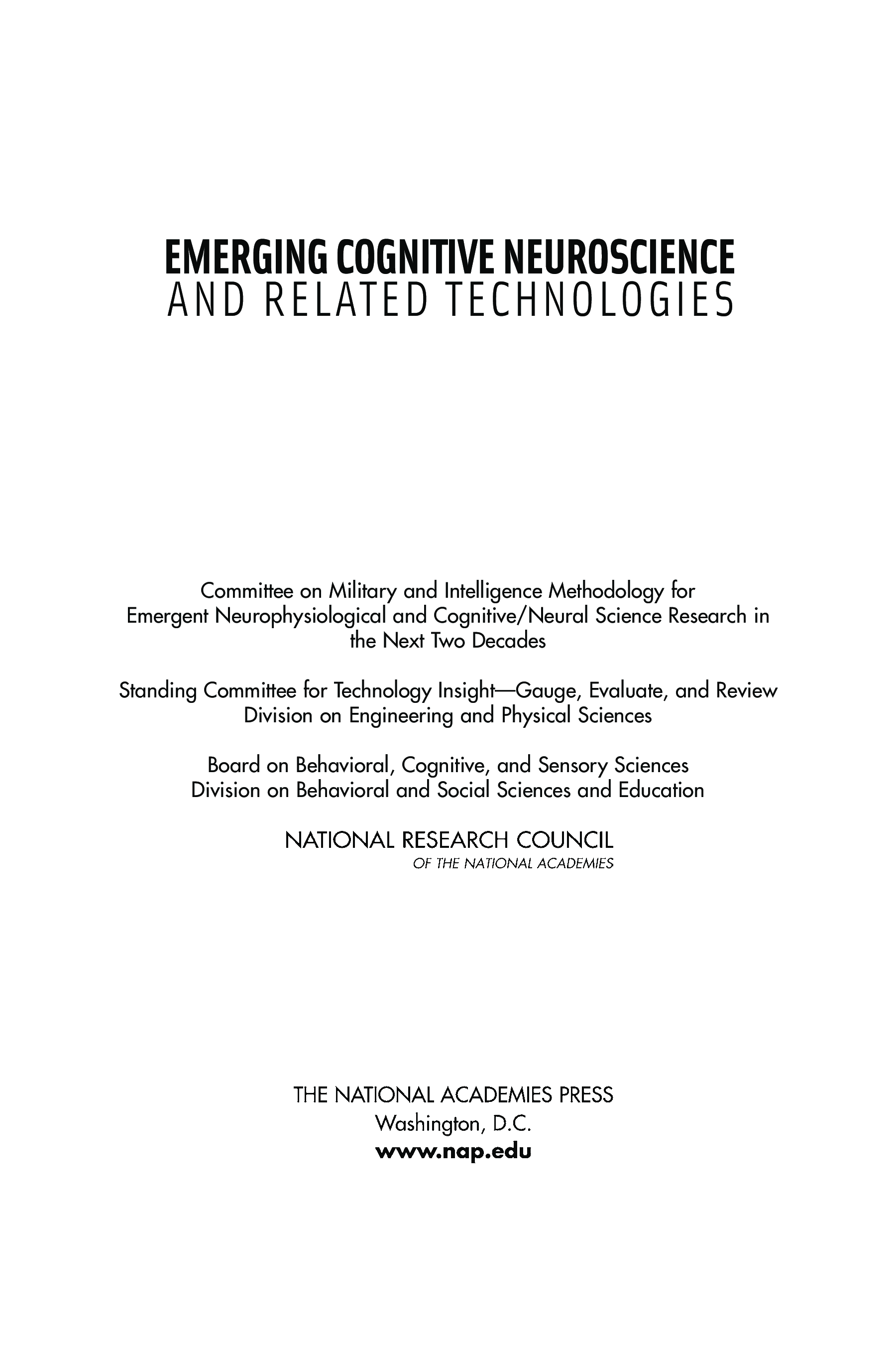 "Emerging Cognitive Neuroscience and Related Technologies" - читать интересную книгу автора (Committee on Military and Intelligence Methodology for Emergent...) |