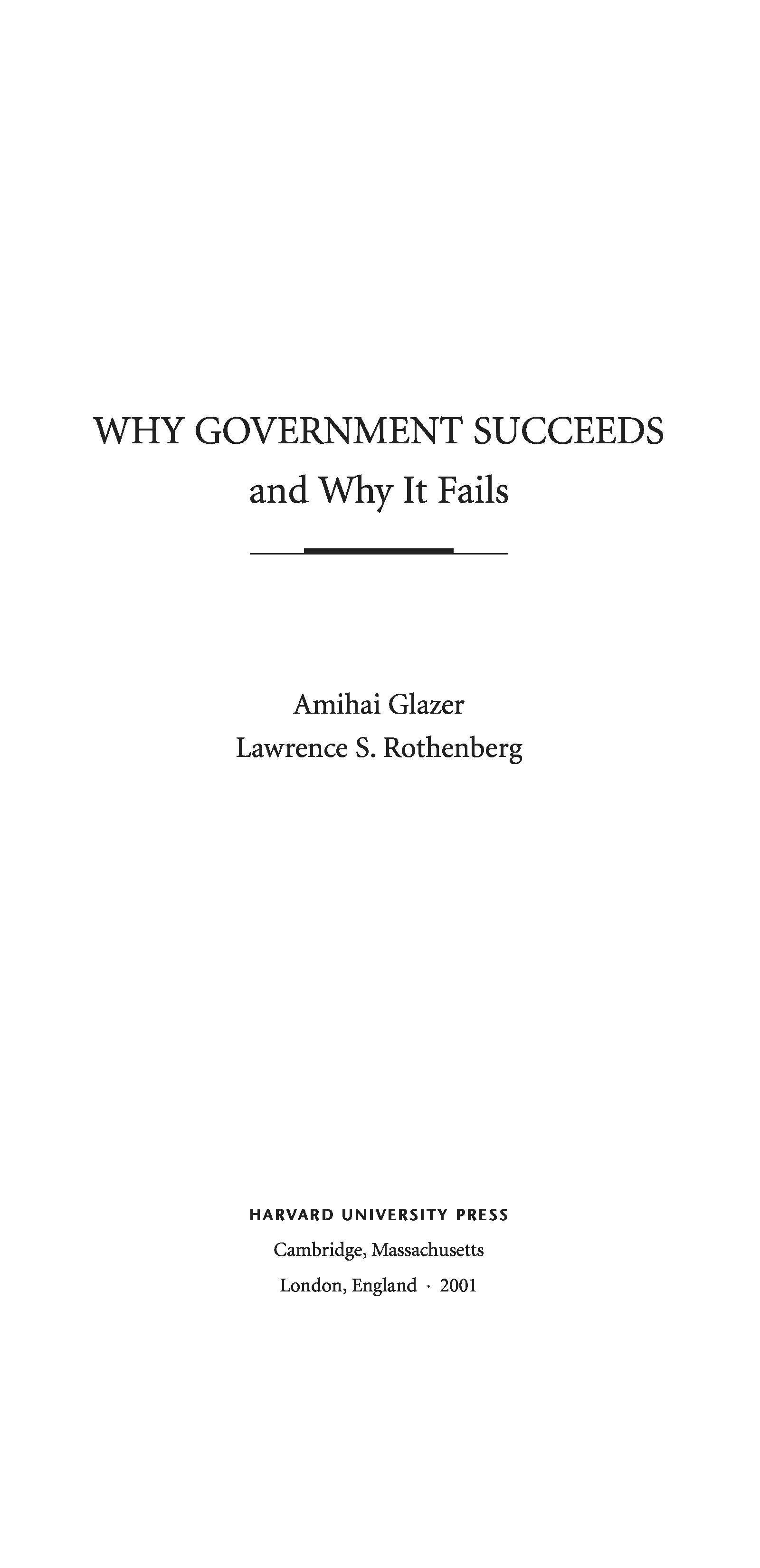 "Why Government Succeeds and Why It Fails" - читать интересную книгу автора (Amihai Glazer, Lawrence S. Rothenberg) |