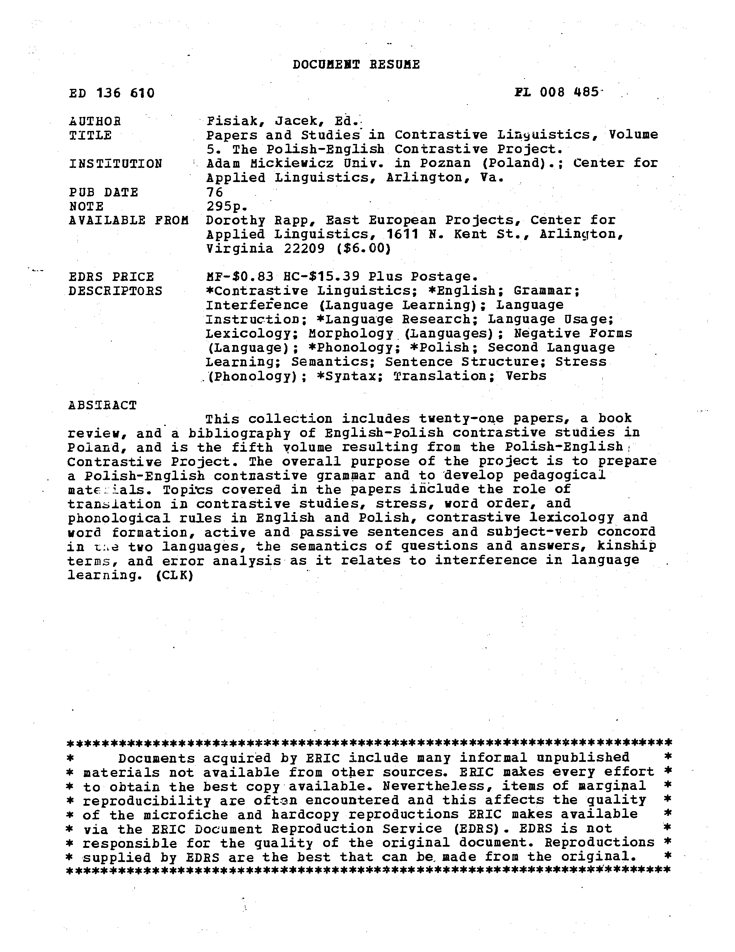 "Papers and Studies in Contrastive Linguistics, Volume 5" - читать интересную книгу автора (Jacek Fisiak) |