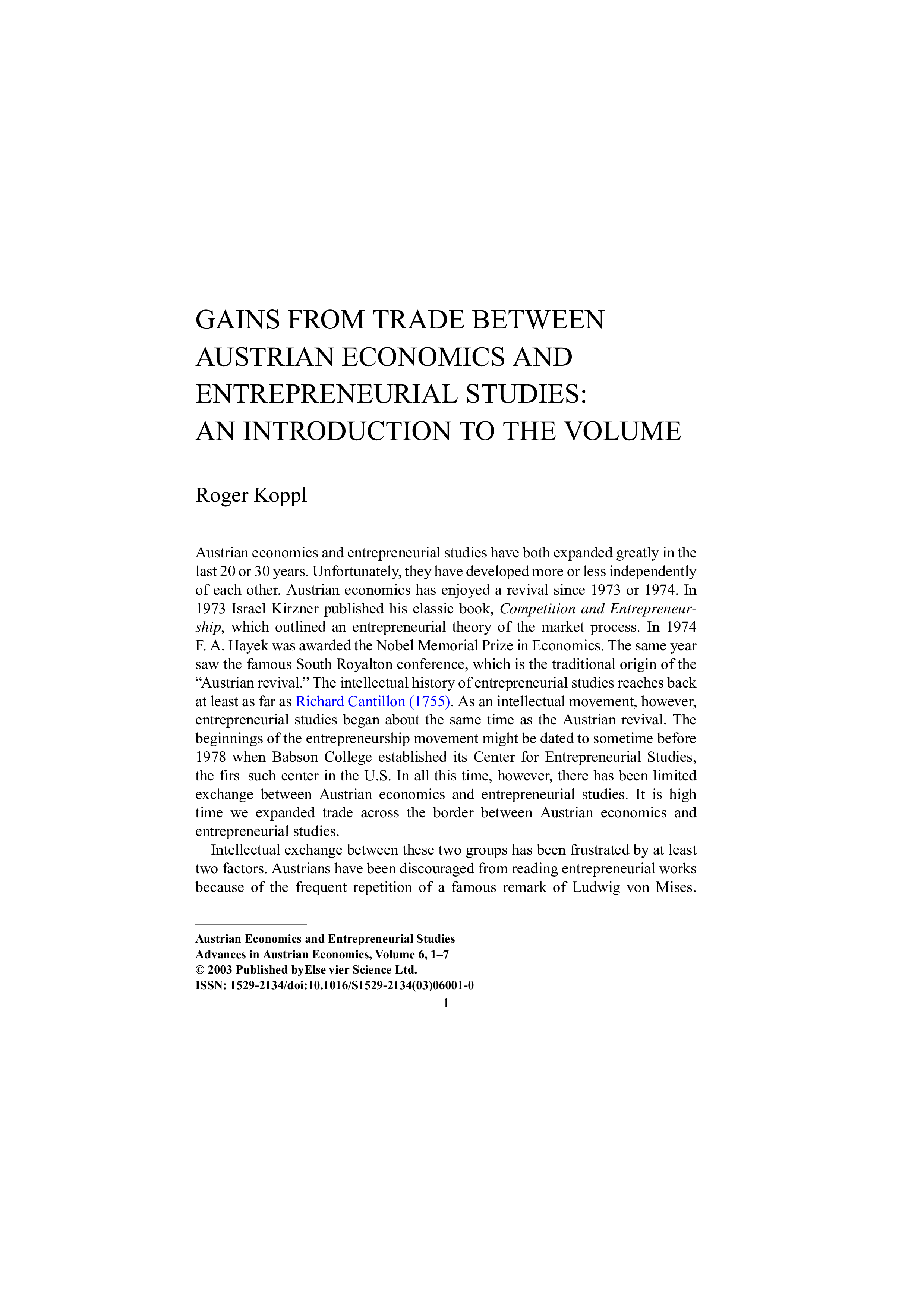 "Austrian Economics and Entrepreneurial Studies (Advances in Austrian Economics, Volume 6)" - читать интересную книгу автора (Roger Koppl (Editor))
