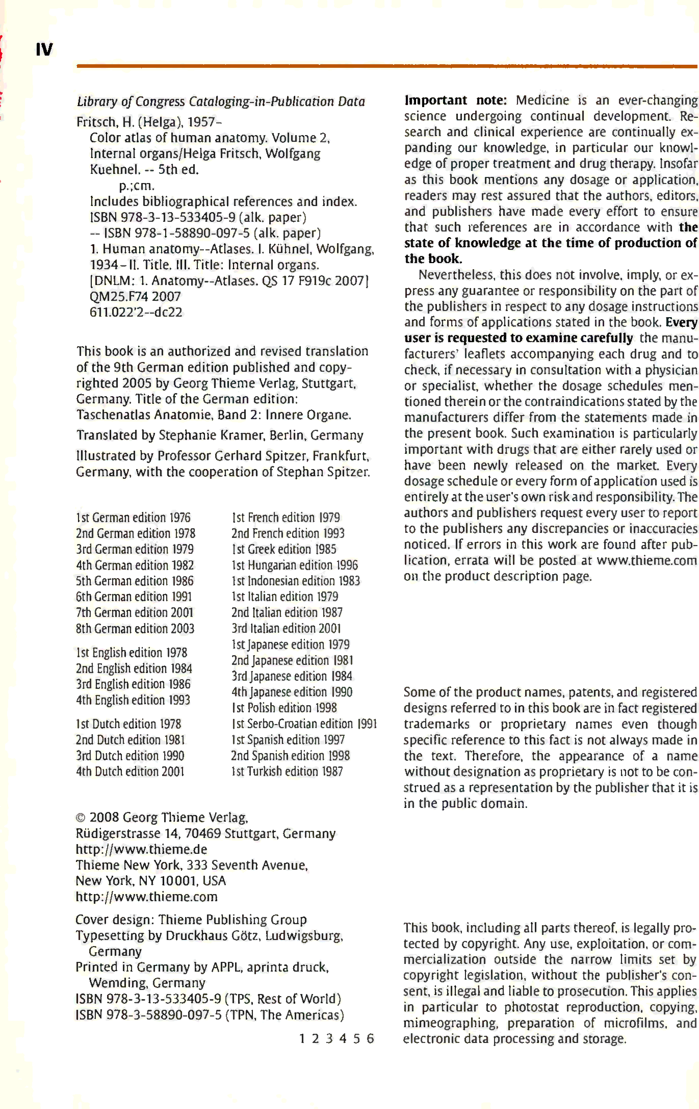 "Color Atlas of Human Anatomy: Internal Organs v. 2" - читать интересную книгу автора (Helga Fritsch, Wolfgang Kuehnel)
