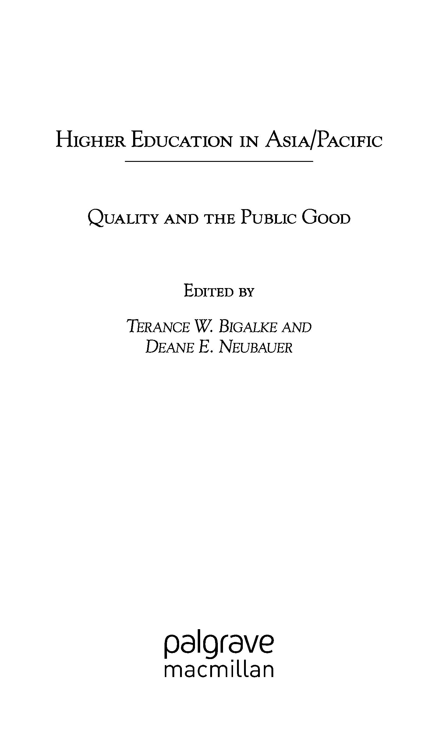 "Higher Education in Asia Pacific: Quality and the Public Good (International and Development Education)" - читать интересную книгу автора (Terance William Bigalke, Deane E. Neubauer, International Forum on Higher...) |