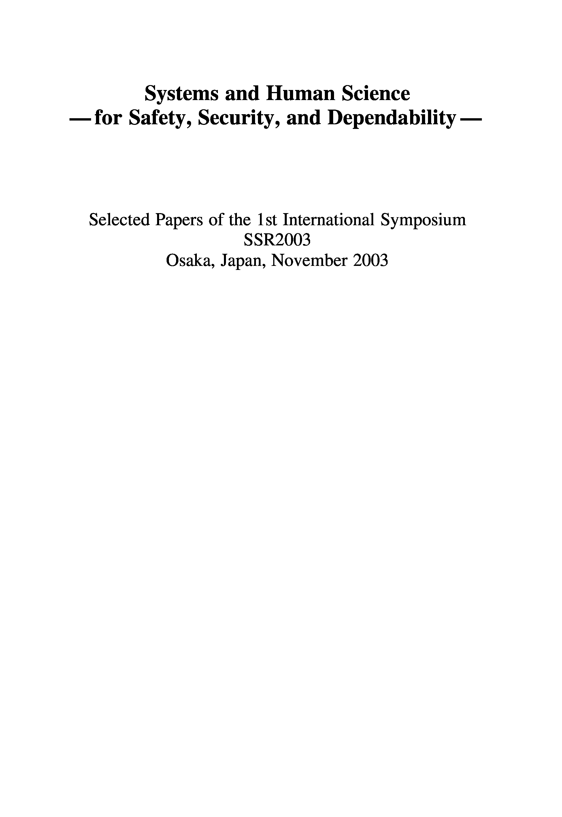 "Systems and Human Science - For Safety, Security and Dependability: Selected Papers of the 1st International Symposium SSR 2003, Osaka, Japan, November 2003" - читать интересную книгу автора (Tatsuo Arai, Shigeru Yamamoto, Kazuhisa Makino (Editors)) |