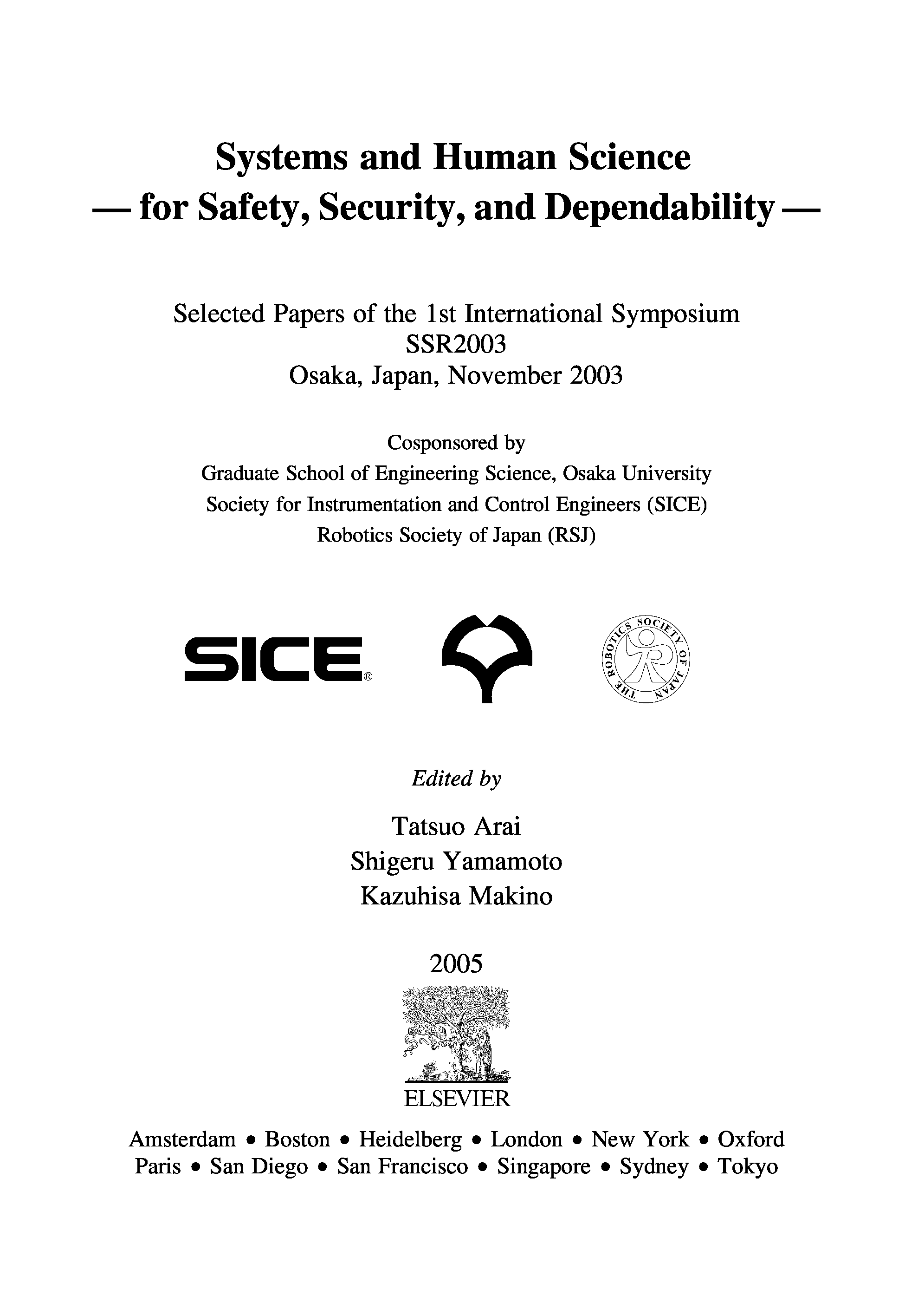 "Systems and Human Science - For Safety, Security and Dependability: Selected Papers of the 1st International Symposium SSR 2003, Osaka, Japan, November 2003" - читать интересную книгу автора (Tatsuo Arai, Shigeru Yamamoto, Kazuhisa Makino (Editors)) |