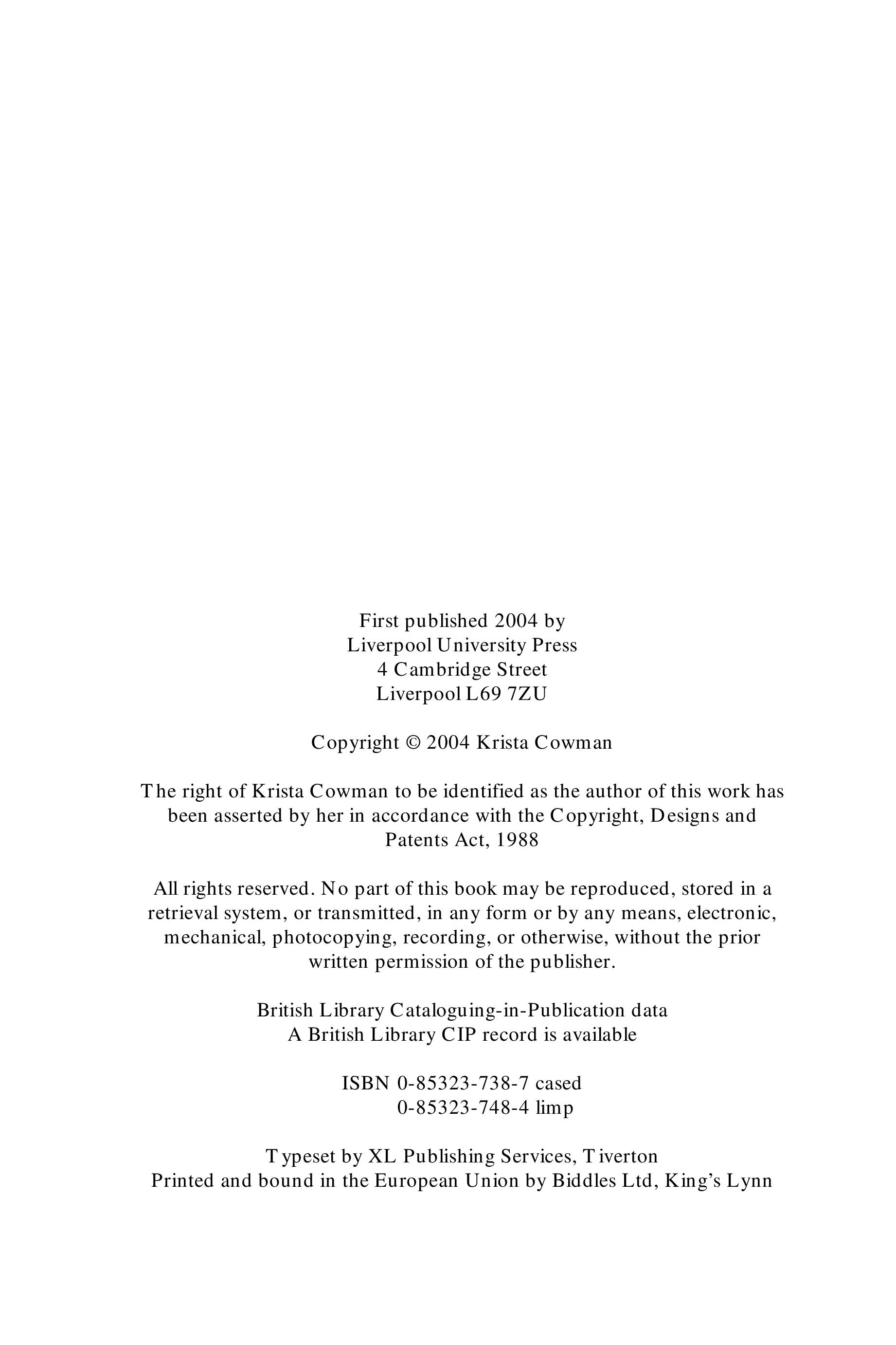 "Mrs Brown is a Man and a Brother: Women in Merseyside's Political Organisations 1890-1920" - читать интересную книгу автора (Krista Cowman) |