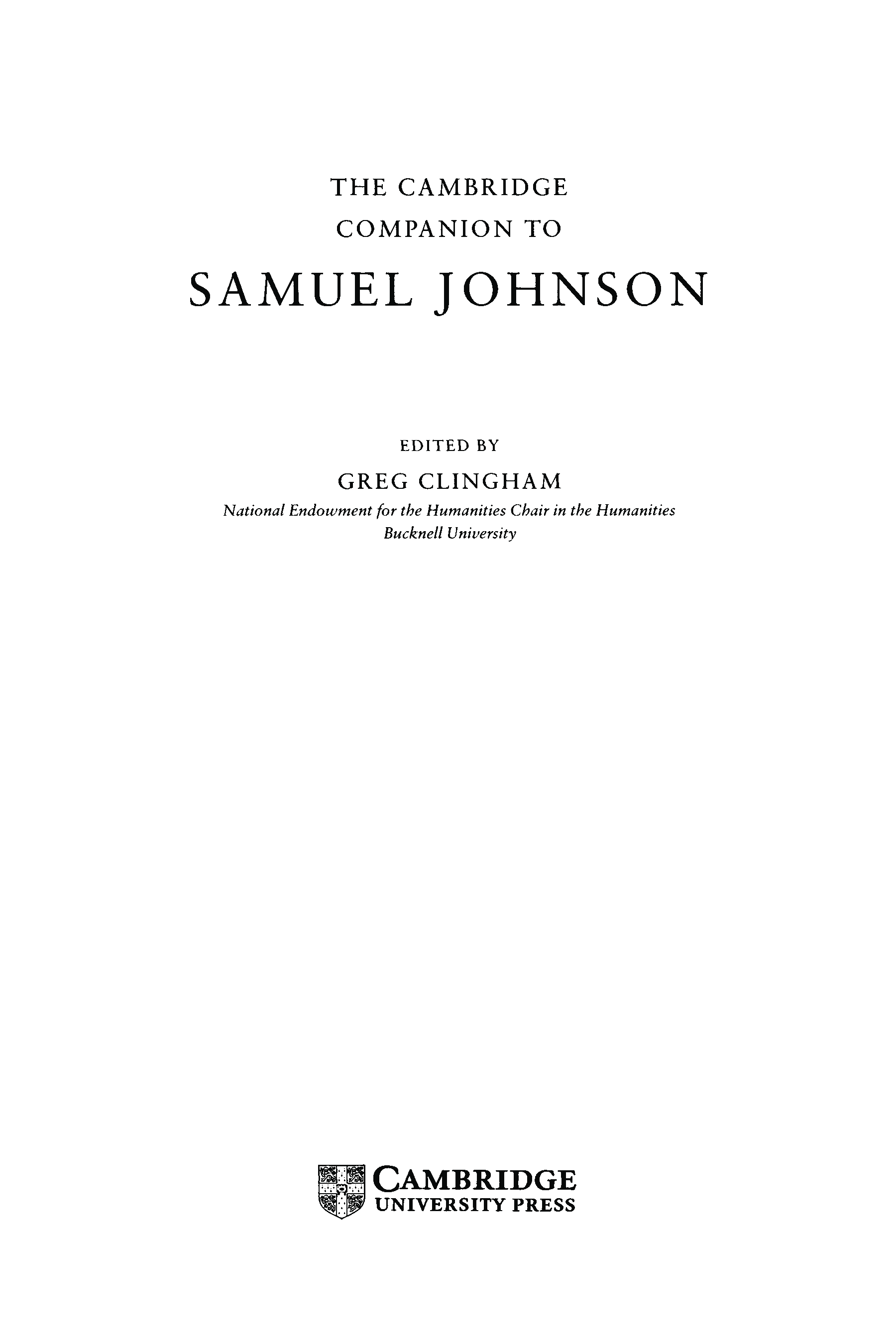 "The Cambridge Companion to Samuel Johnson (Cambridge Companions to Literature)" - читать интересную книгу автора (Greg Clingham)