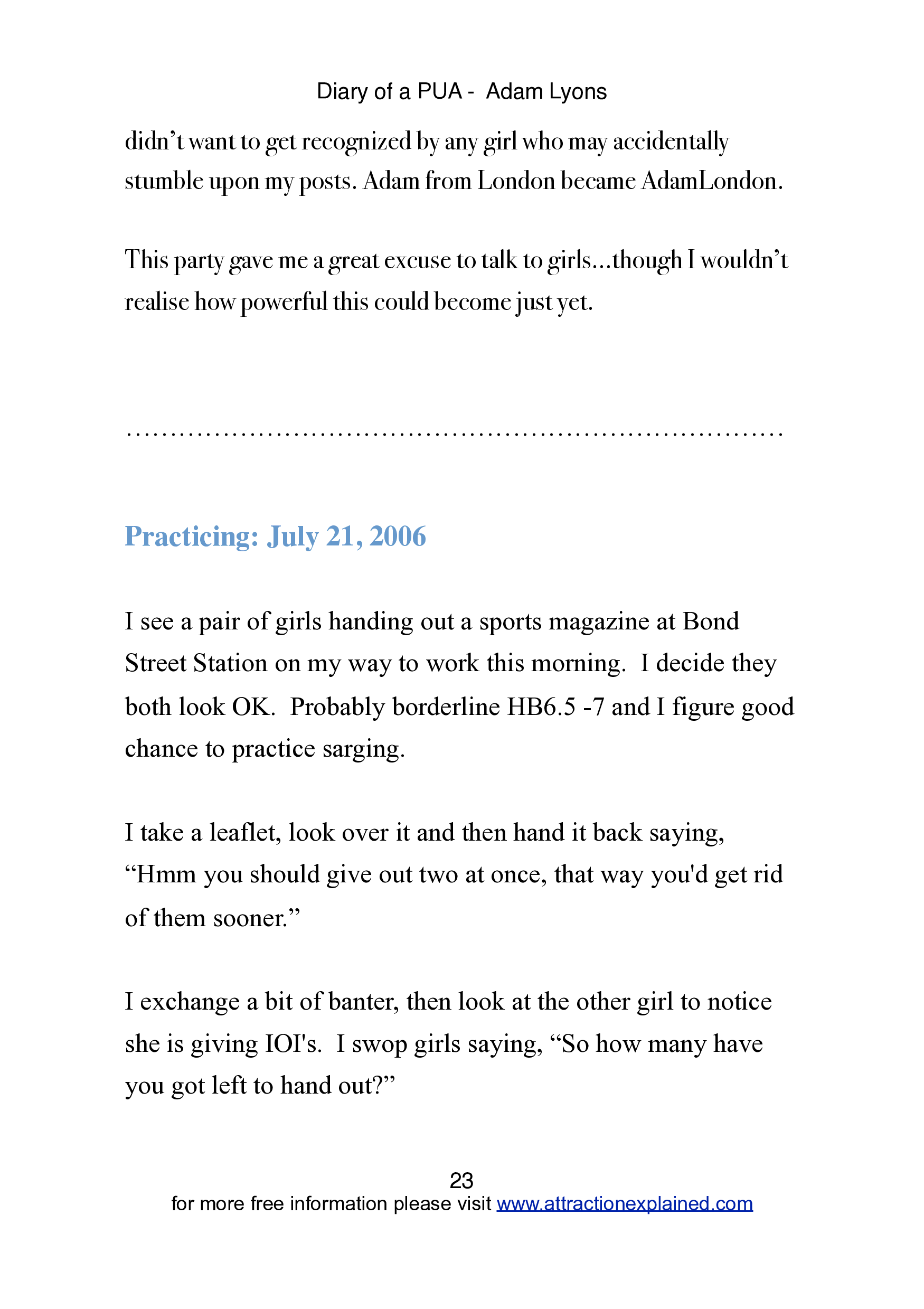 "The Diary of a Pick Up Artist: Memoirs of an Average Frustrated Chump" - читать интересную книгу автора (Adam Lyons)