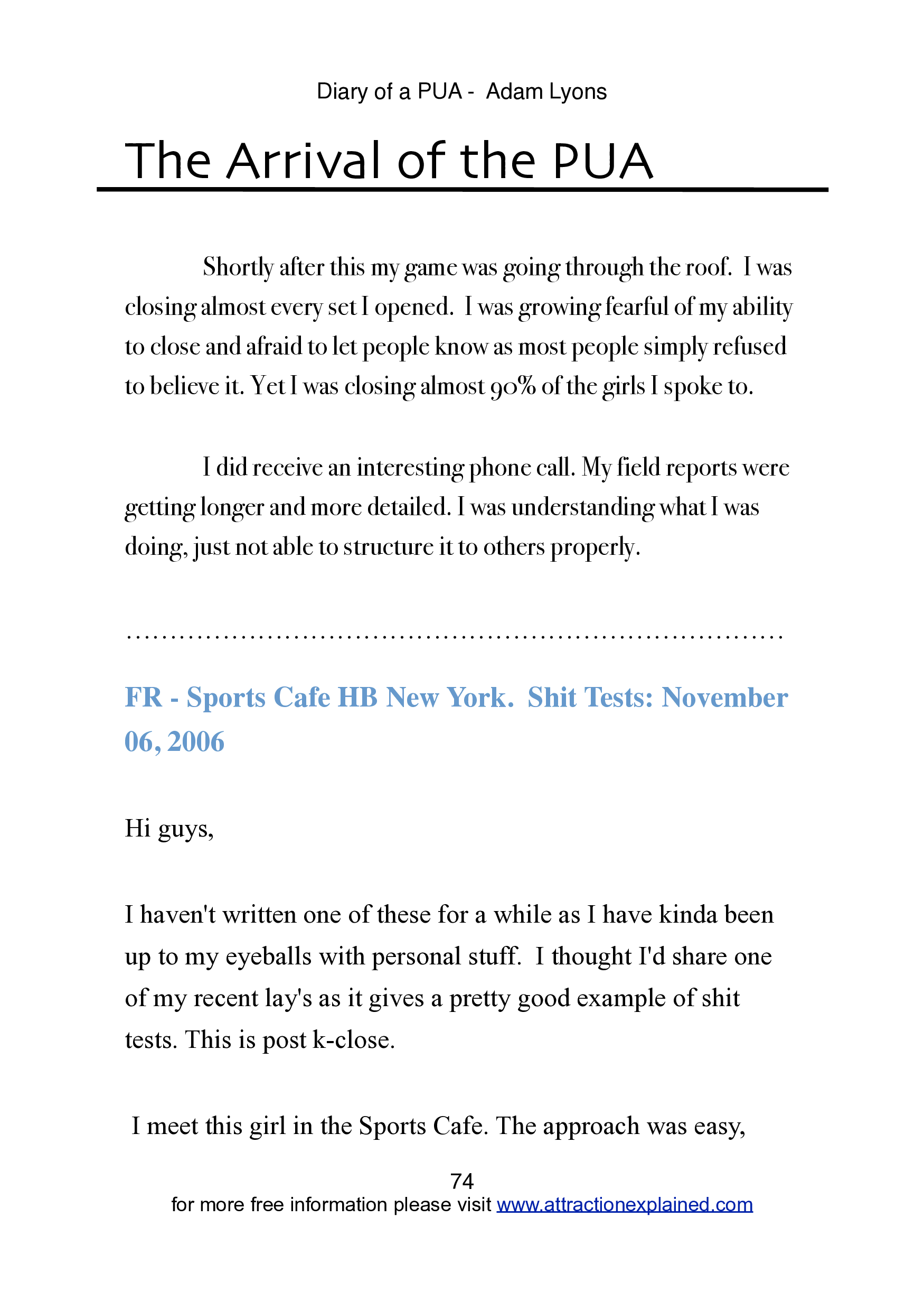 "The Diary of a Pick Up Artist: Memoirs of an Average Frustrated Chump" - читать интересную книгу автора (Adam Lyons)
