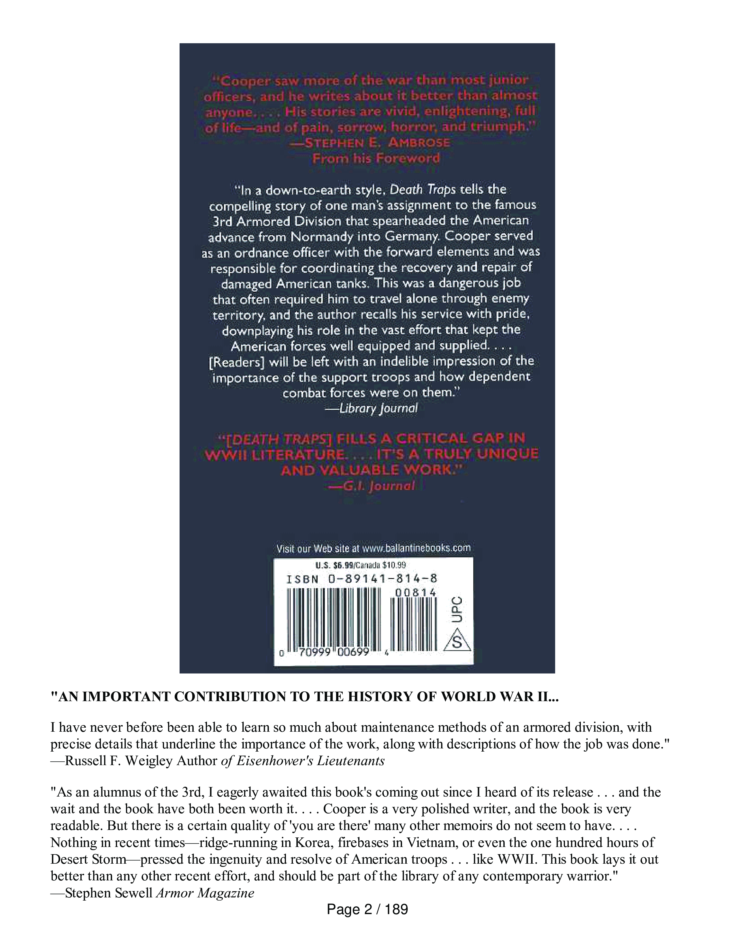 "Death Traps: The Survival of an American Armored Division in World War II" - читать интересную книгу автора (Belton Y. Cooper) |