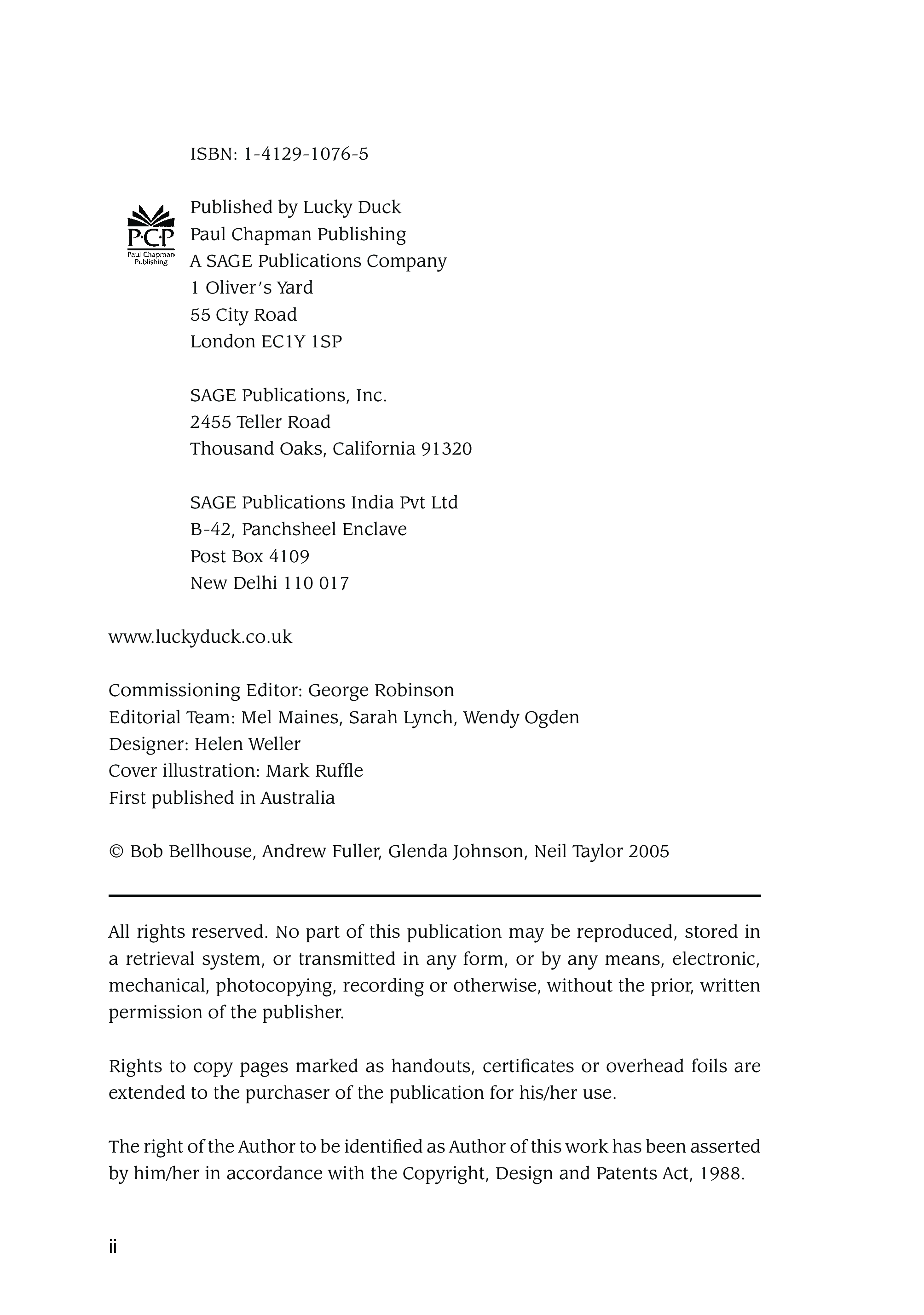 "Managing the Difficult Emotions: A Programme for the Promotion of Emotional Intelligence and Resilience for Young People Aged 12 To 16 (Lucky Duck Books)" - читать интересную книгу автора (Bob Bellhouse, Andrew Fuller, Glenda Johnston) |