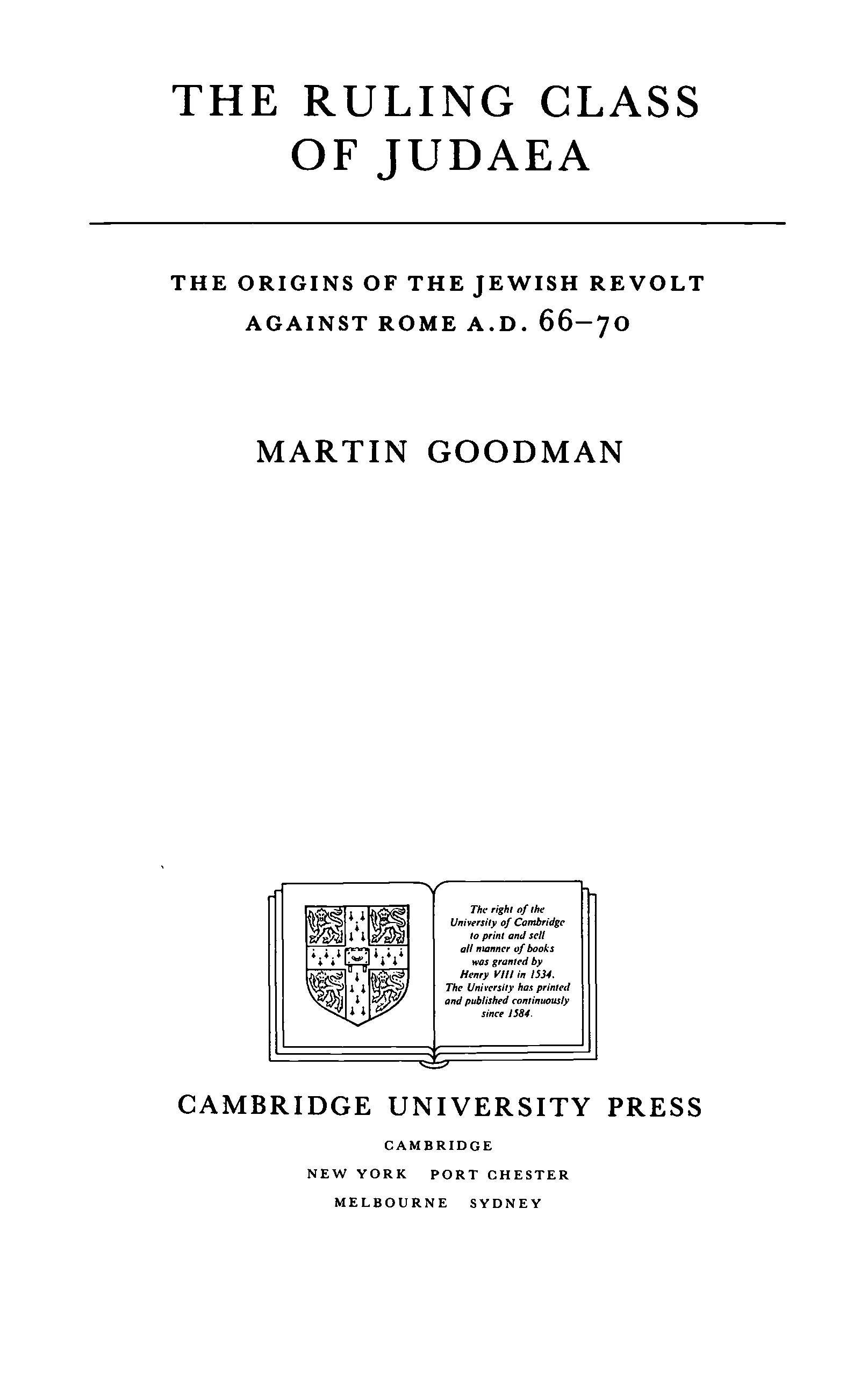 "The Ruling Class of Judaea: The Origins of the Jewish Revolt against Rome, A.D. 66-70" - читать интересную книгу автора (Martin Goodman) |