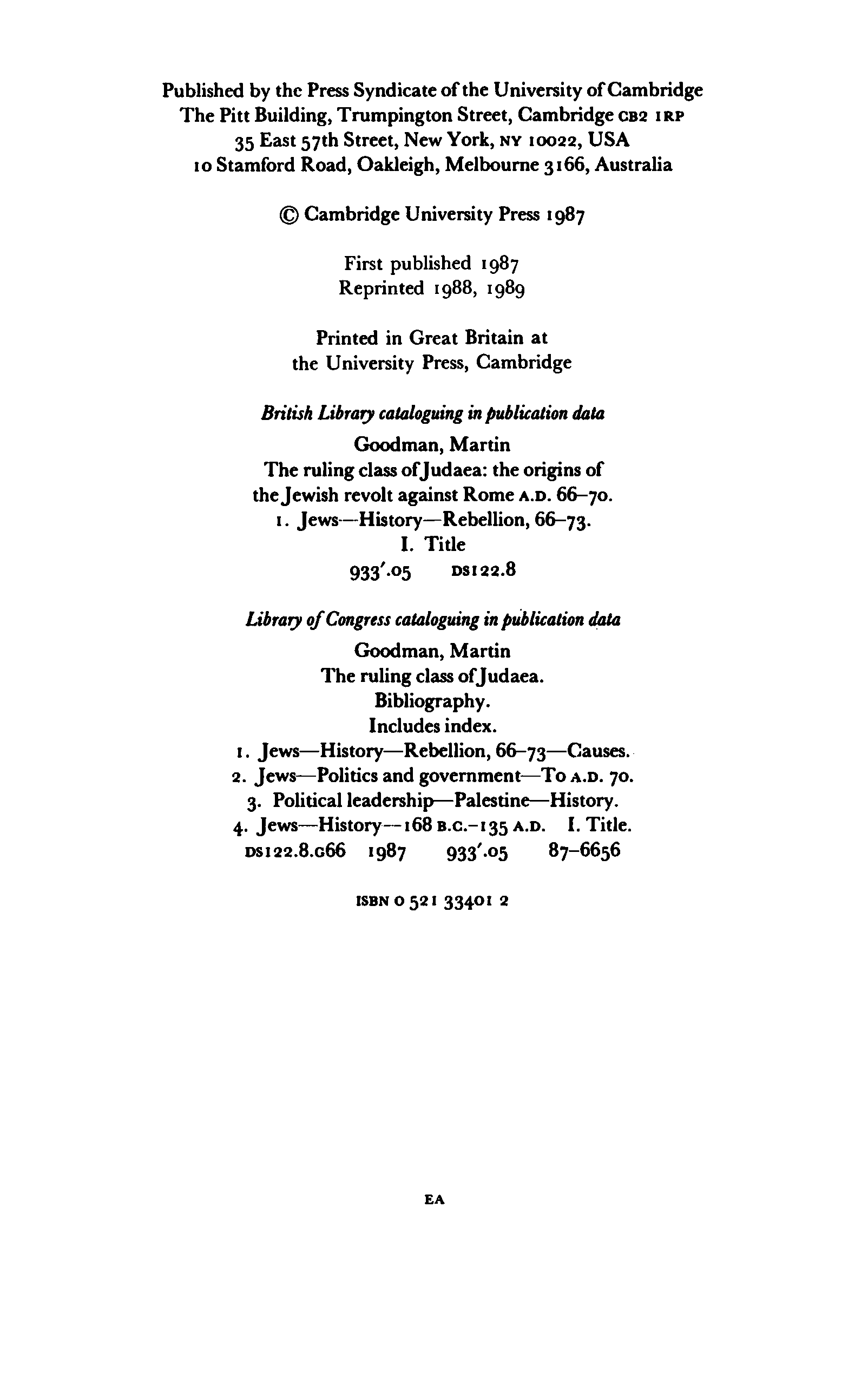 "The Ruling Class of Judaea: The Origins of the Jewish Revolt against Rome, A.D. 66-70" - читать интересную книгу автора (Martin Goodman) |