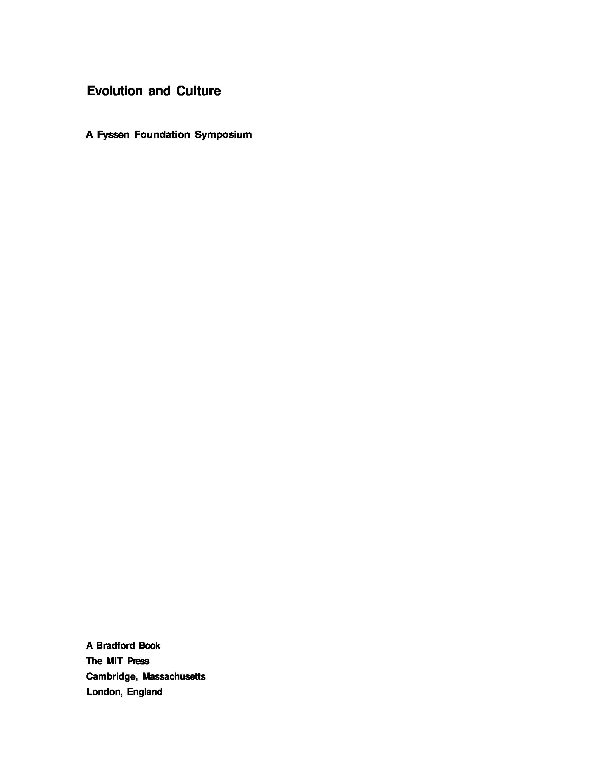 "Evolution and Culture: A Fyssen Foundation Symposium (Bradford Books)" - читать интересную книгу автора (Stephen C. Levinson, Pierre Jaisson (Editors)) |