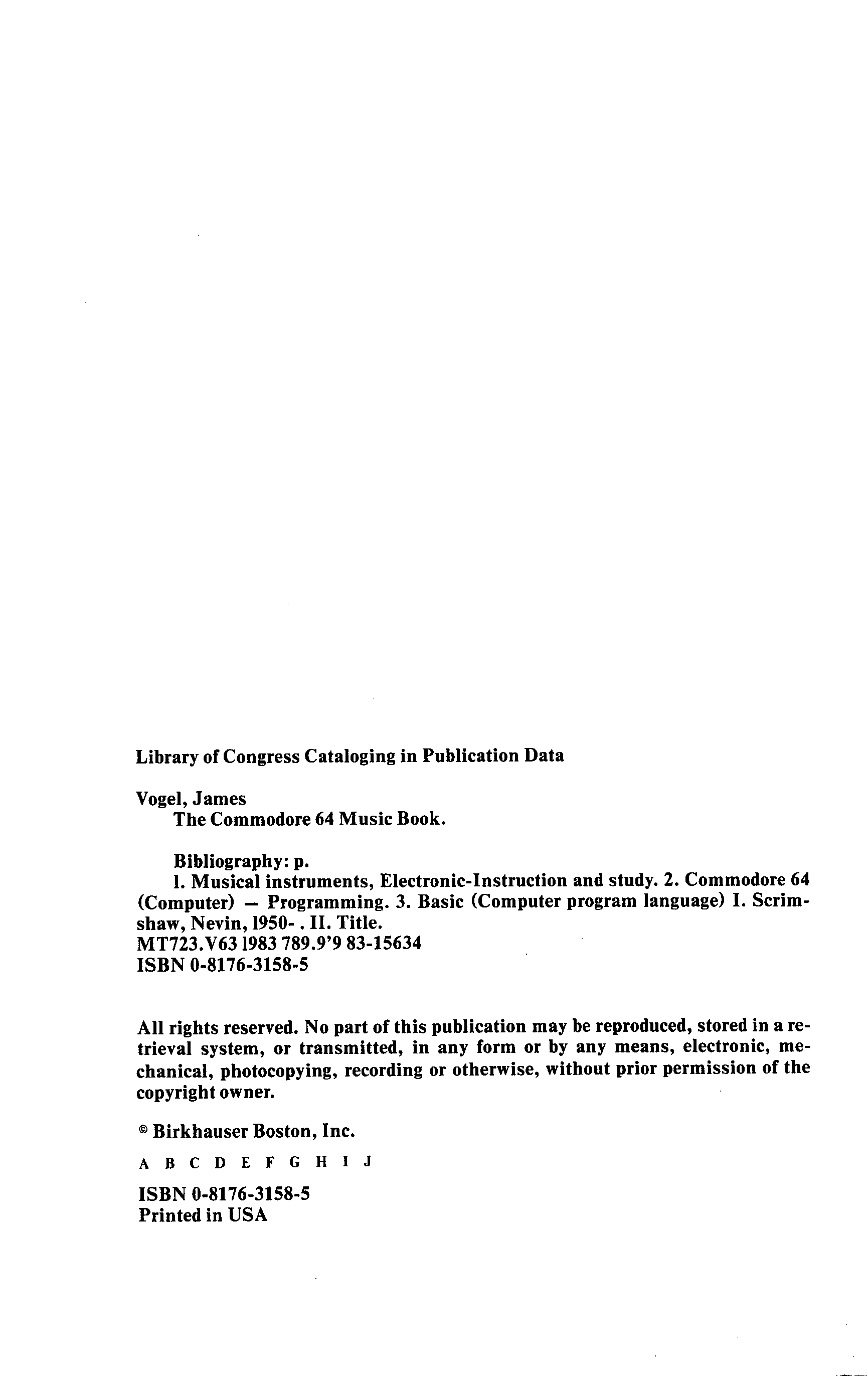 "The Commodore 64 Music Book. A Guide to Programming Music and Sound" - читать интересную книгу автора (James Vogel, Nevin B. Scrimshaw) |