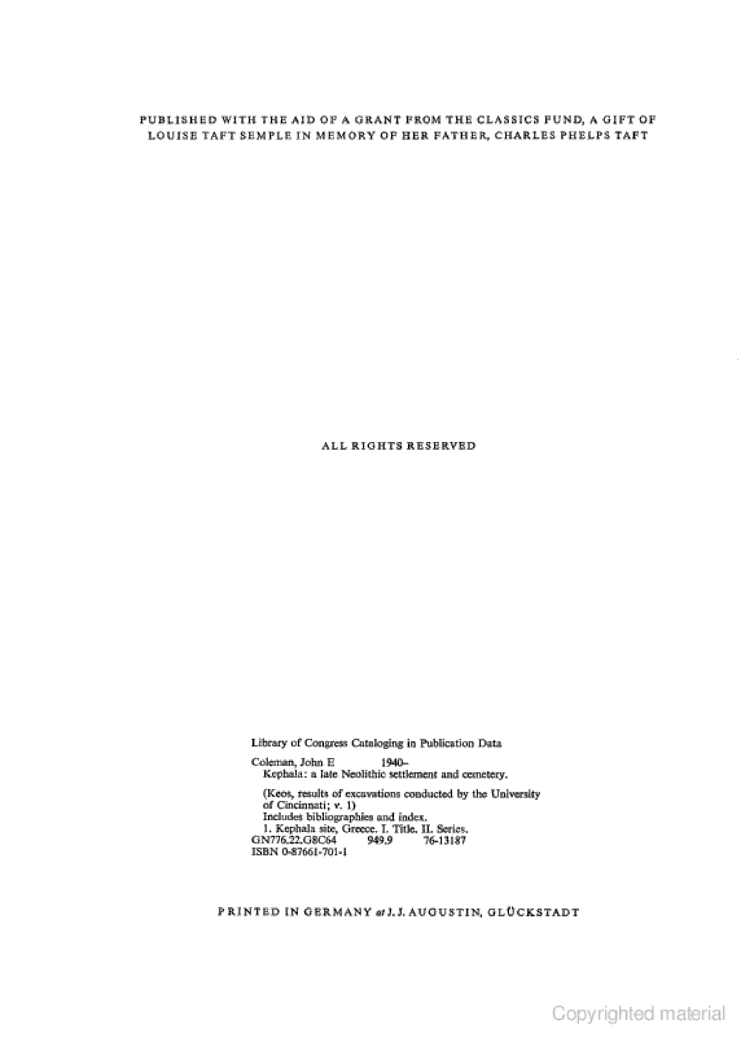 "Kephala: a late Neolithic settlement and cemetery (Keos I)" - читать интересную книгу автора (John E. Coleman) |