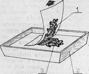 "Переплет и реставрация книг" - читать интересную книгу автора (Ирошников Ю. П., Ирошникова И. Г.)ИЗГОТОВЛЕНИЕ ПЕРЕПЛЕТНЫХ КРЫШЕКПрежде всего несколько слов о материалах, необходимых для изготовления переплетных крышек… Для переплетного дела используются бумага, картон, технические и текстильные ткани, бумага со специальными покрытиями, клеи. Остановим свое внимание на материалах, идущих на покрытие переплетных крышек. Давно ушли в небытие такие традиционные переплетные материалы, как кожа и парча. Коленкор и ледерин в продаже не встретишь (даже в наборах для «Умелых рук»!). Зато научно-технический прогресс предлагает взамен материалов на тканой основе новые переплетные материалы с синтетическими покрытиями, которые и нарядны, и долговечны, и относительно дешевы, да и работать с ними довольно легко. В канцелярских магазинах «Школьник» и в магазинах «Сделай сам» бывают в продаже листы бумвинила размером 355 х 455 мм, причём выбор их по цветовой гамме и фактуре довольно широкий. А если уж всё-таки возникли трудности с покровными материалами, можно попробовать переплетать, используя в качестве их обычные или моющиеся обои. Нe следует забывать и о том, что текстильный лоскут (ситец, сатин, «рогожка», цветные шелковые, шерстяные и штапельные ткани) — ценное подспорье в работе. Очень хорошо выглядят переплеты из простой бортовки. К тому же ее легко окрасить в любой цвет. Если же ткань тонкая или разреженная, через нее может проступать клей. В этом случае ткань дублируют бумагой: лист газетной бумаги смазывают клеем, и после того как клей несколько подсохнет, бумагу переносят на предварительно натянутый на доске лоскут ткани и тщательно притирают к нему. В переплетных работах старых мастеров часто встречается в качестве покровного материала, а иногда и на форзацах красивая «мраморная» бумага. Не пытайтесь искать ее в магазинах, а попробуйте сделать самостоятельно. Для этого понадобятся масляные краски для художественных работ тех оттенков, сочетание которых вы хотите увидеть в готовой продукции, а также растворители или разбавители для этих красок (бензин, керосин, скипидар, «Разбавитель № 2», или уайт-спирит и др.). Каждую из красок разбавляют до жидкого состояния одним из имеющихся разбавителей и набрызгивают на поверхность воды так, чтобы краски максимально покрыли поверхность воды. Затем, взяв лист бумаги за противоположные узкие стороны, аккуратно опустите его на поверхность воды, начиная с одного края и следя за тем, чтобы между бумагой и водой не оставалось воздушных пузырей. После того как весь лист ляжет на воду, осторожно извлеките его из воды (рис. 1.7) и просушите на газете или на растянутой бечевке окрашенной стороной вверх. Для фиксация краски и придания глянца высохшую бумагу желательно покрыть слоем жидкого крахмального клейстера и после просушки отгладить горячим утюгом. Самые большие сложности всегда возникают с приобретением переплетного картона. Обычно для изготовления переплетных крышек применяют картон толщиной 1–2 мм, а в продаже его, как правило, не бывает. Приходится комбинировать, то есть склеивать до нужной толщины и жесткости куски полукартона от различных коробок, использовать старые переплетные крышки или поступать так, как это делали издавна мастера переплетного дела — клеить картон из газет. Един