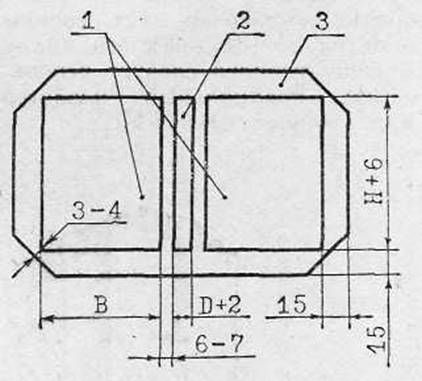 Проверив качество приклейки покровного материала к крышкам и отставу с лицевой стороны (морщины и складки следует разгладить косточкой), готовый полуфабрикат сушат под прессом. Ну а если в обрезках остались различные переплетные материалы, не спешите их выбрасывать. Попробуйте их использовать для выполнения переплета «под старину», то есть составного переплета с уголками. Крышки такого переплета делают из двух слоев картона каждую. Внутренняя сторона каждой крышки будет из толстого, а наружная — из тонкого картона (рис. 19). Нужно только постараться изготовить эти сторонки так, чтобы после их сборки, то есть приклейки всех элементов внешних частей сторонок, между этими элементами оставались канавки шириной 1–1,5 мм.