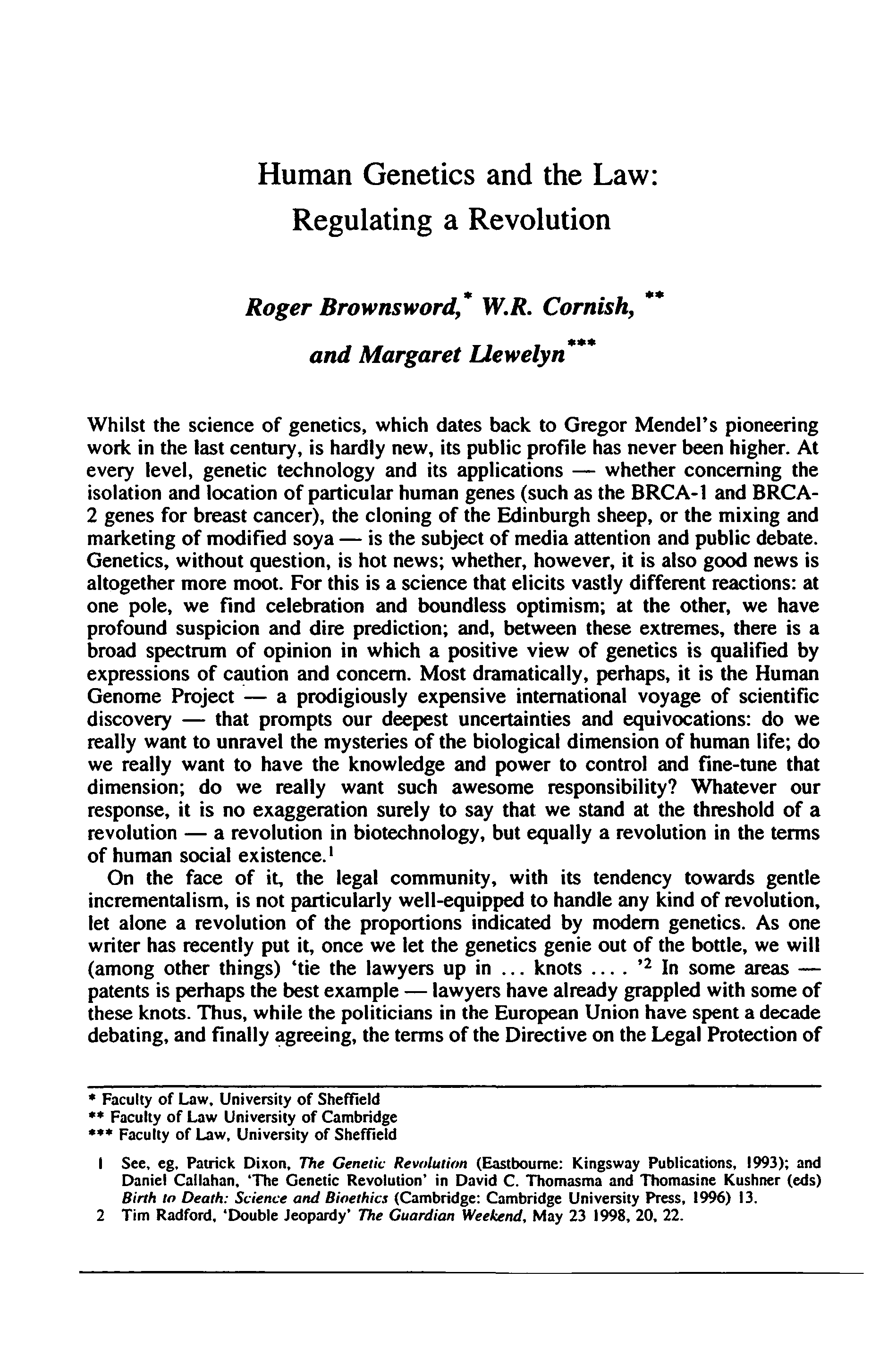 "Law and human genetics: regulating a revolution" - читать интересную книгу автора (Roger Brownsword, William Rodolph Cornish, Margaret Llewelyn)