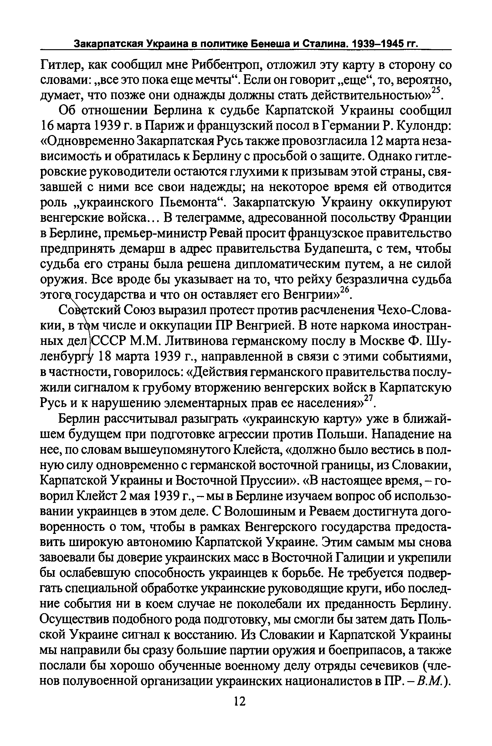 "Закарпатская Украина (Подкарпатская Русь) в политике Бенеша и Сталина. 1939 - 1945 гг." - читать интересную книгу автора (Марьина В. В.)