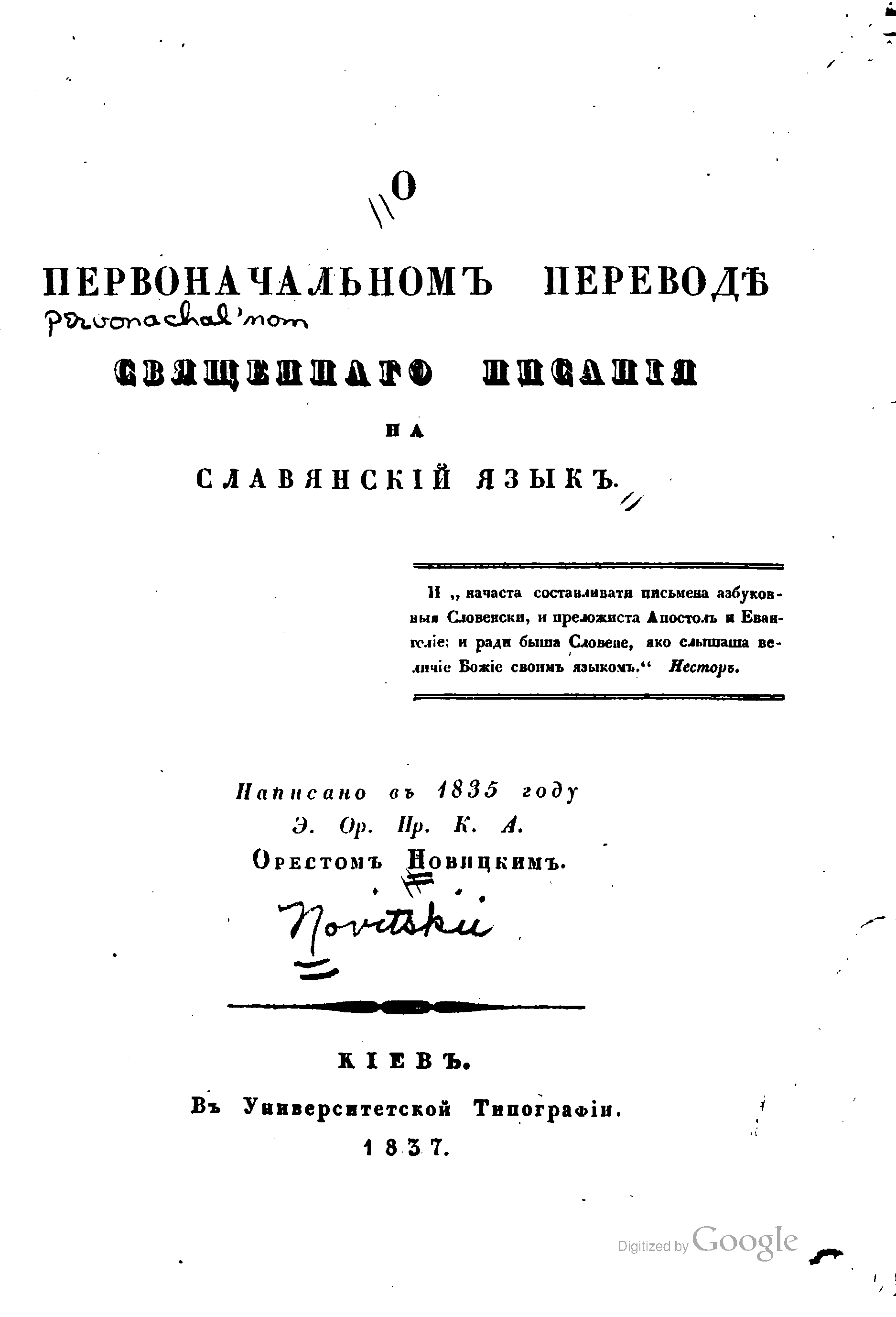 "Новицкий Орест. О первоначальном переводе Священнаго писания на славянский язык." - читать интересную книгу автора |