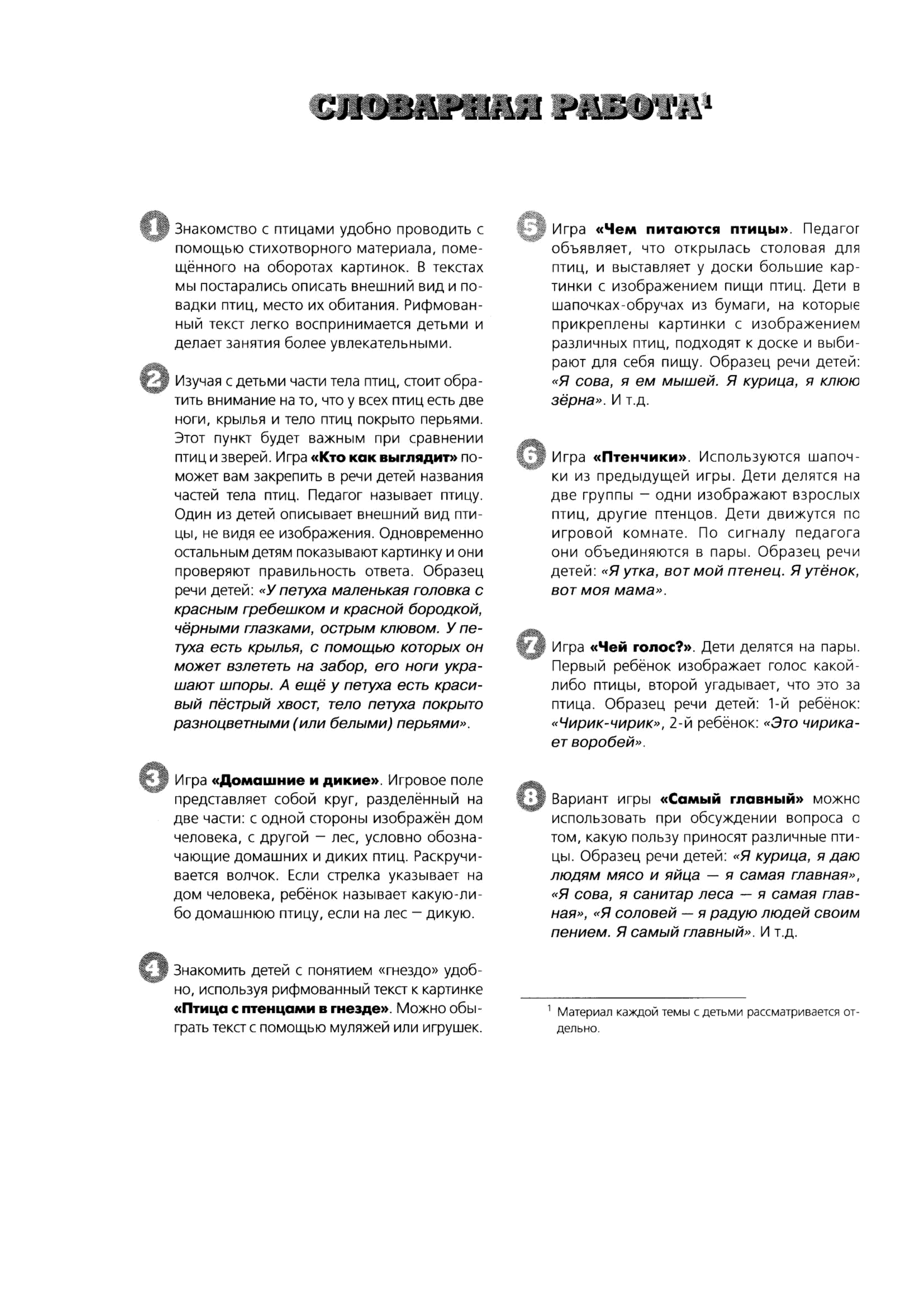 "Тематический словарь в картинках: Мир животных. Домашние и дикие птицы Средней полосы." - читать интересную книгу автора (Васильева С.А., Мирясова В.И.) |