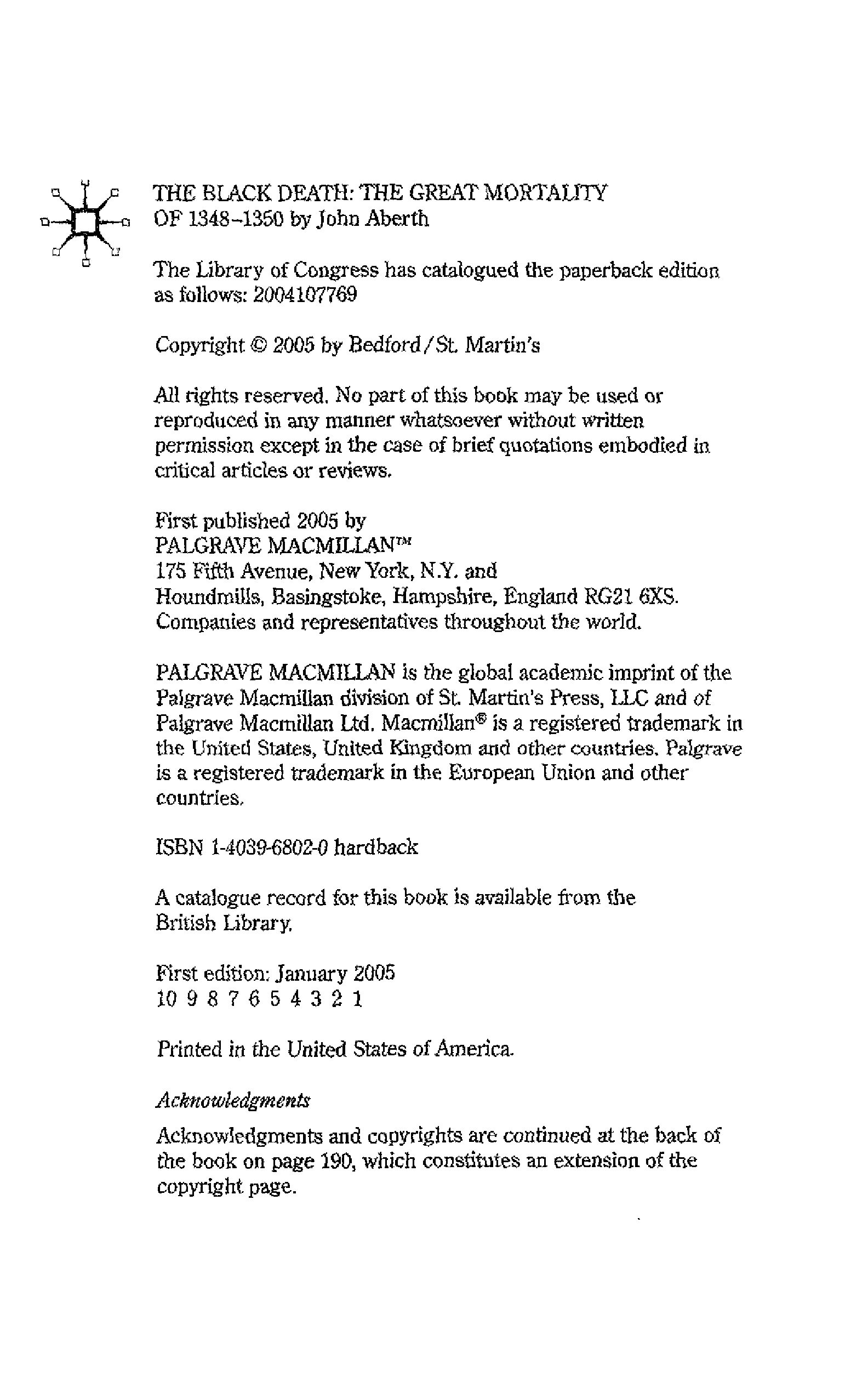 "The Black Death: The Great Mortality of 1348-1350: A Brief History with Documents (Bedford Series in History & Culture) " - читать интересную книгу автора (John Aberth) |